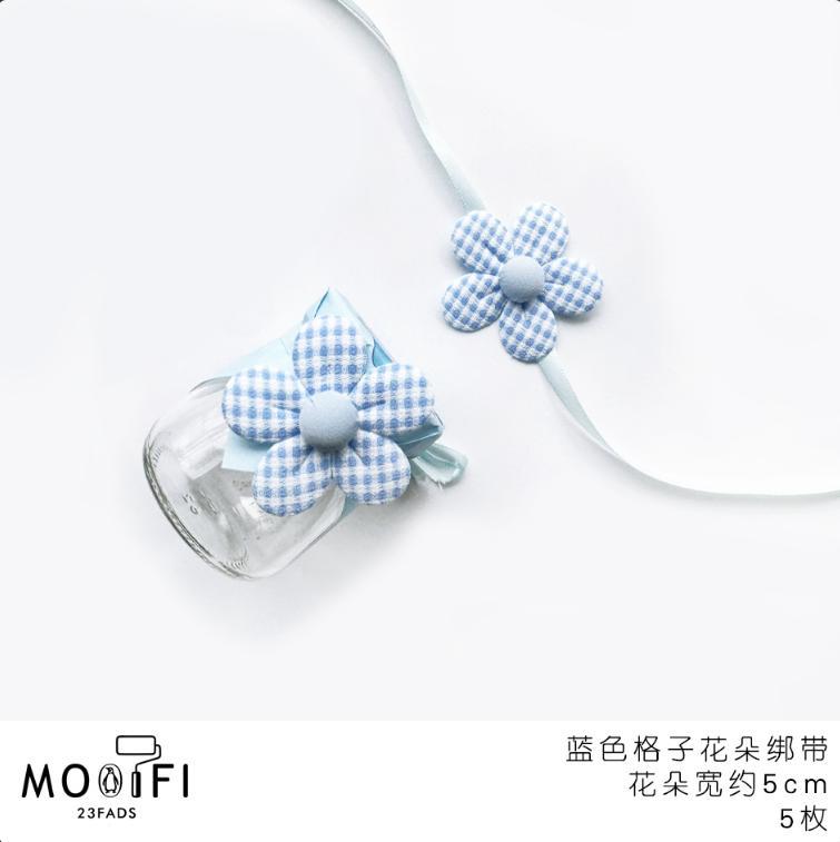 • 라이트 블루 체크 무늬 꽃 스트랩 5개