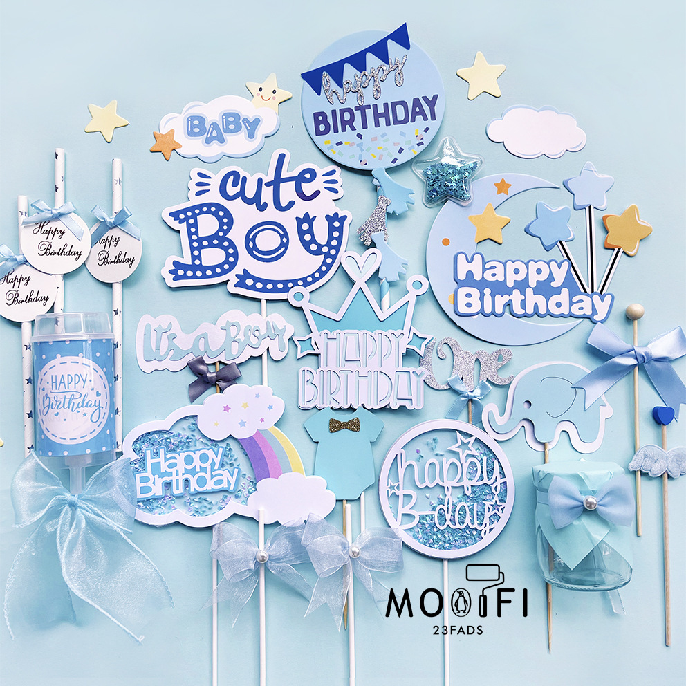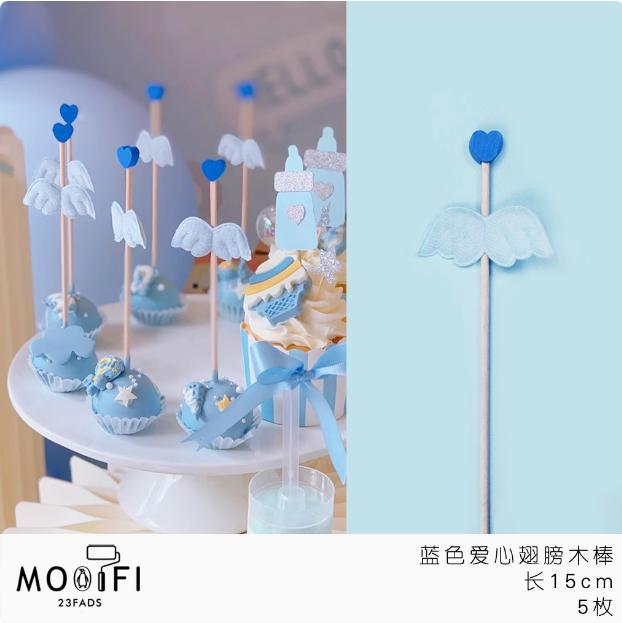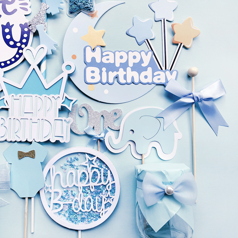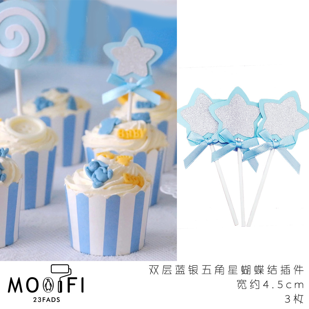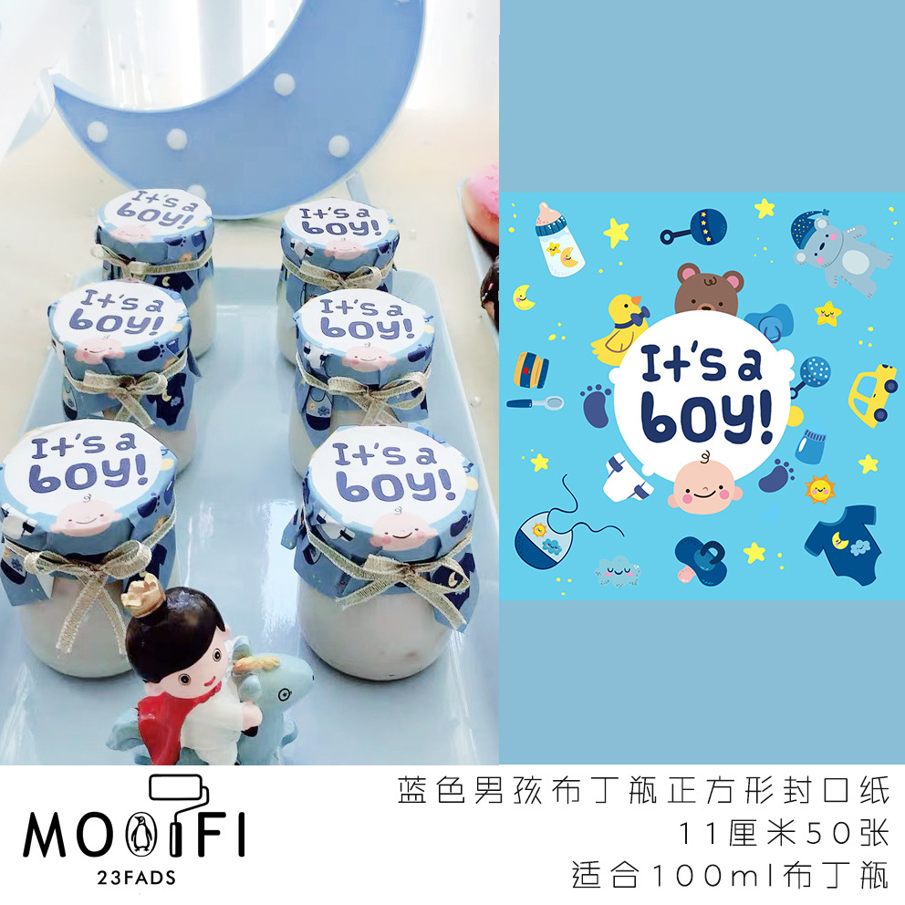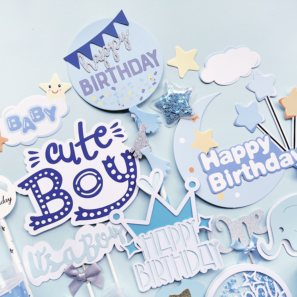 파란색 아기 소년 테마 파티 디저트 테이블 보름달 100일 케이크 삽입 푸딩 병 푸시 레이어 장식스토어 가기