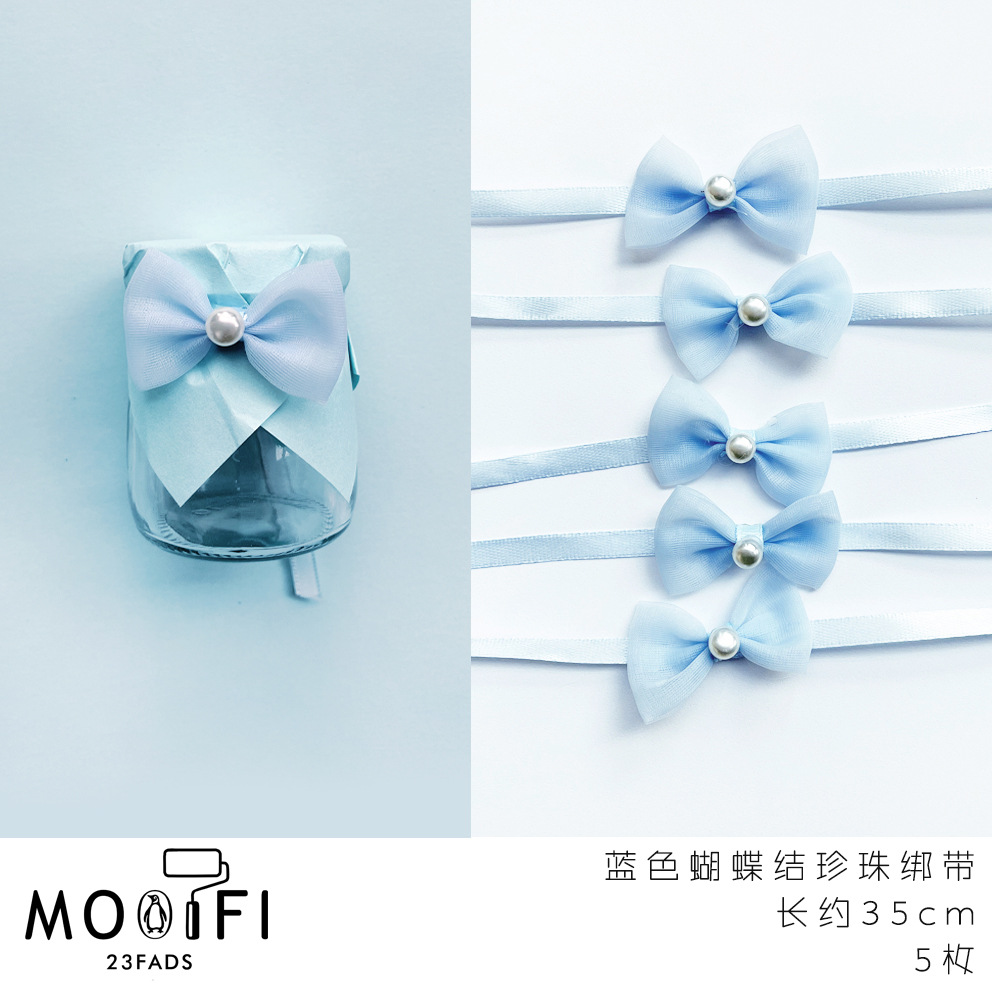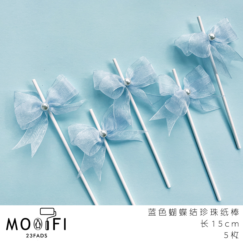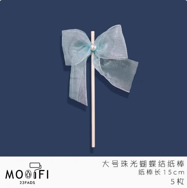 • 진주 종이 스틱이 달린 하늘색 대형 활 5개
