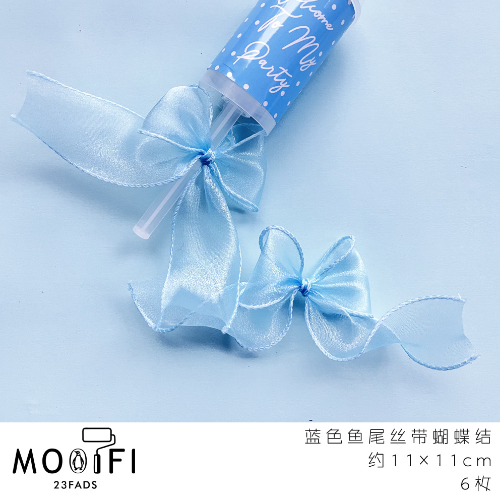 • 글루 도트가 있는 블루 피쉬테일 리본 6개