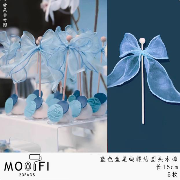 • 파란색 호랑나비 활 둥근 머리 나무 막대기 5개