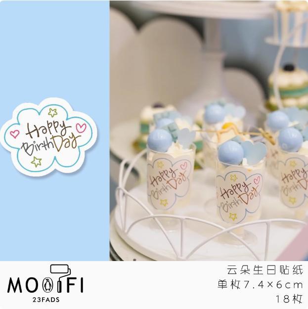 • 흰색 배경 HB 구름 생일 스티커 18개입