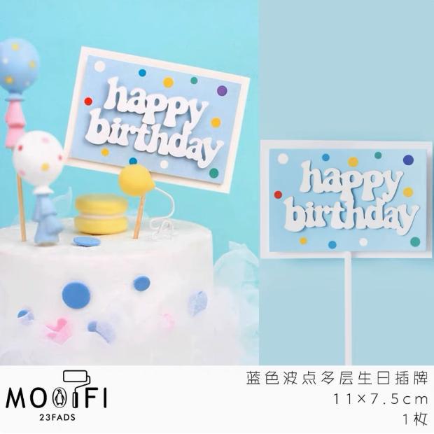 • 파란색 물방울 무늬 다층 생일 카드 1개