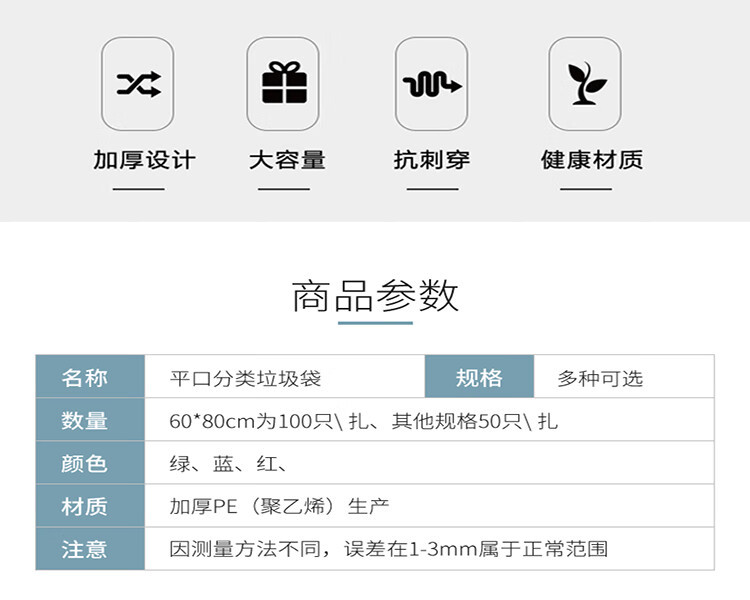 VLEN 호텔 커뮤니티 프로퍼티 상업용 두꺼운 색상 분류 평면 입 대형 플라스틱 쓰레기 봉투 ZTT0417스토어 가기