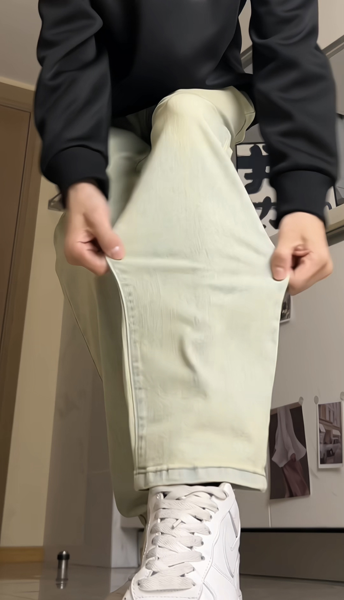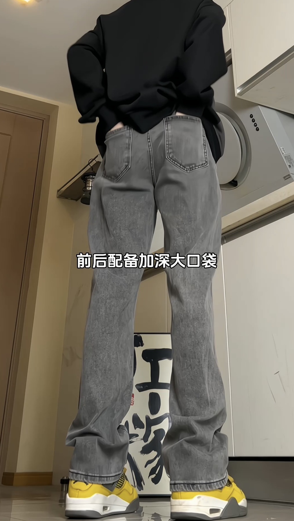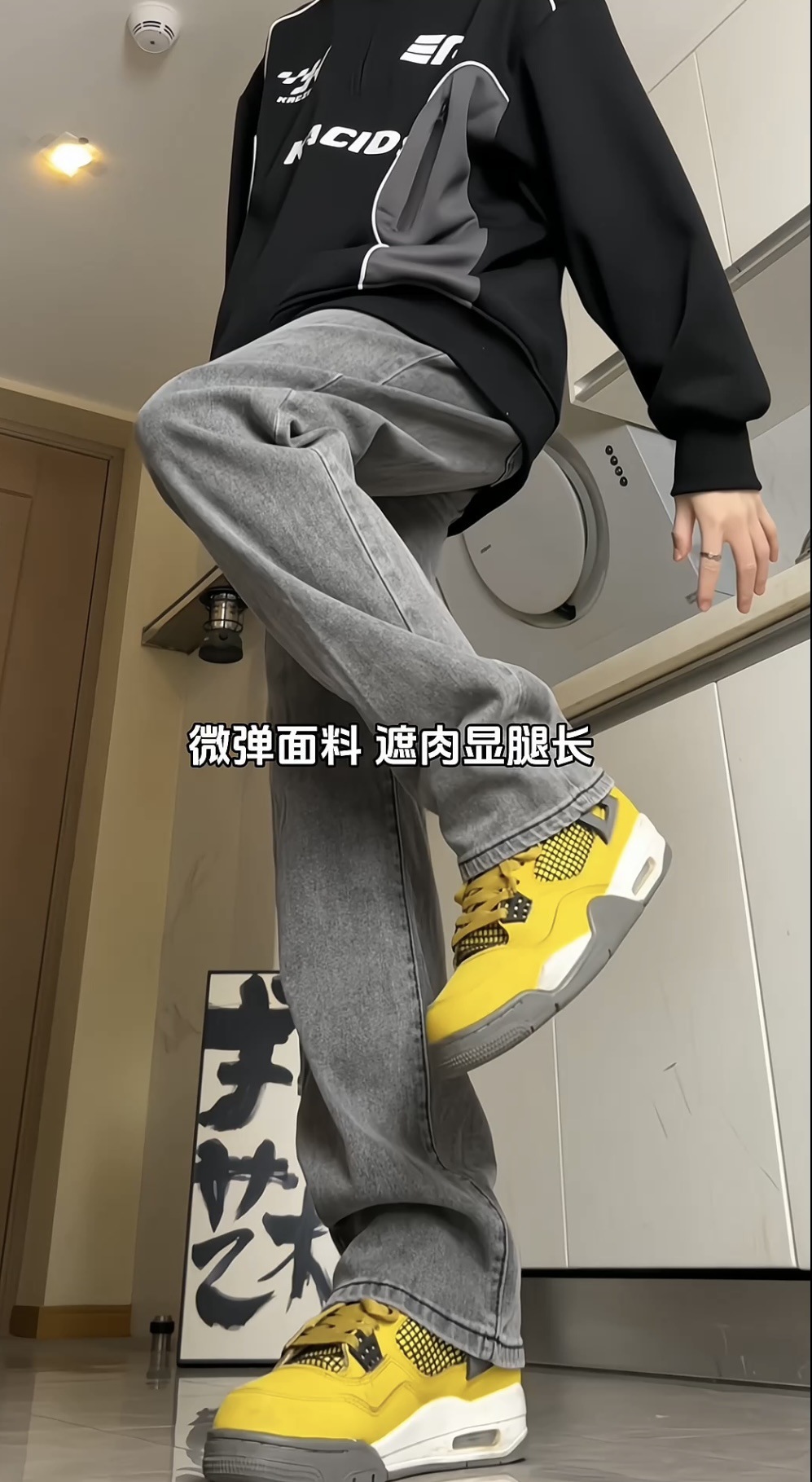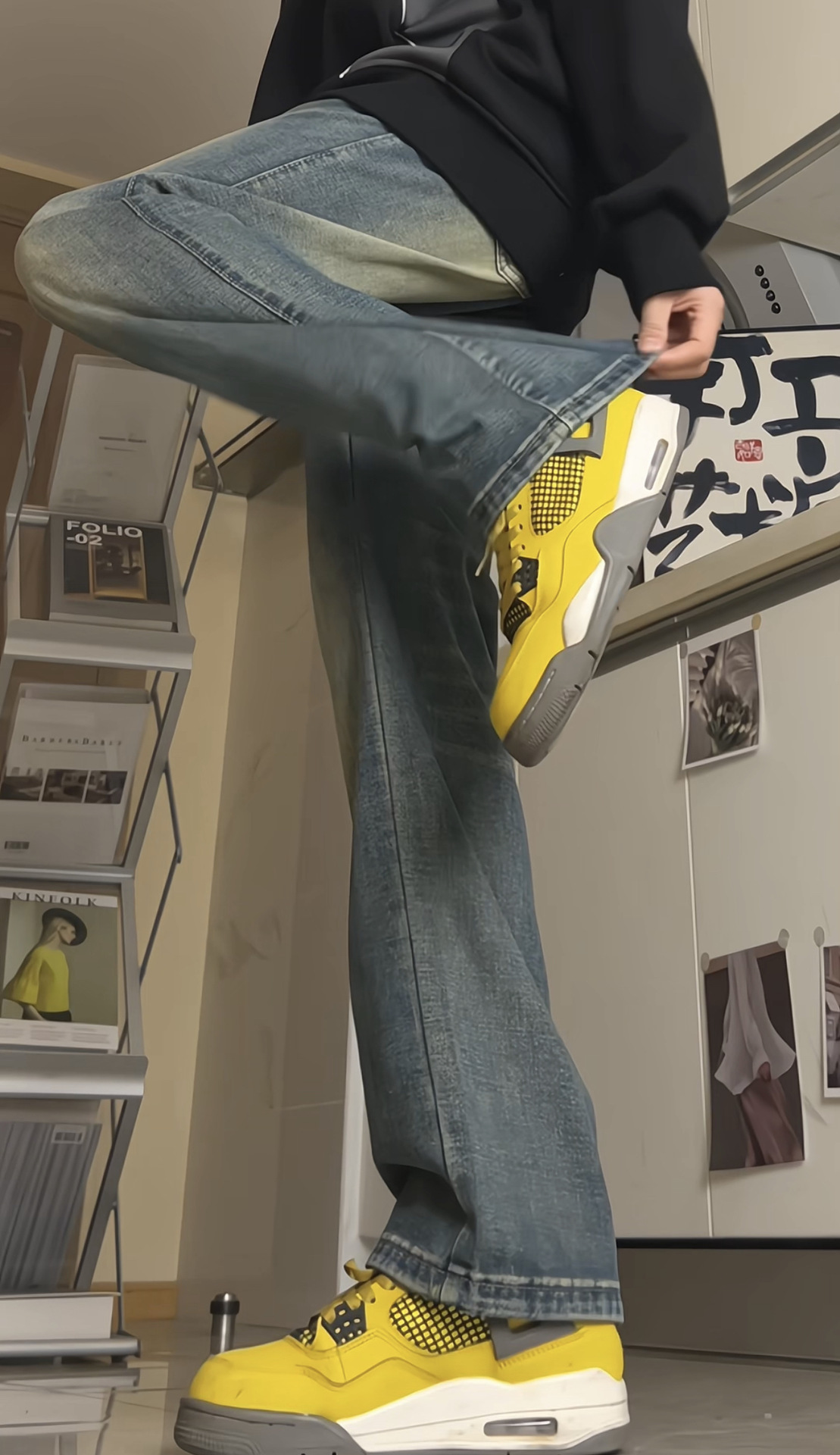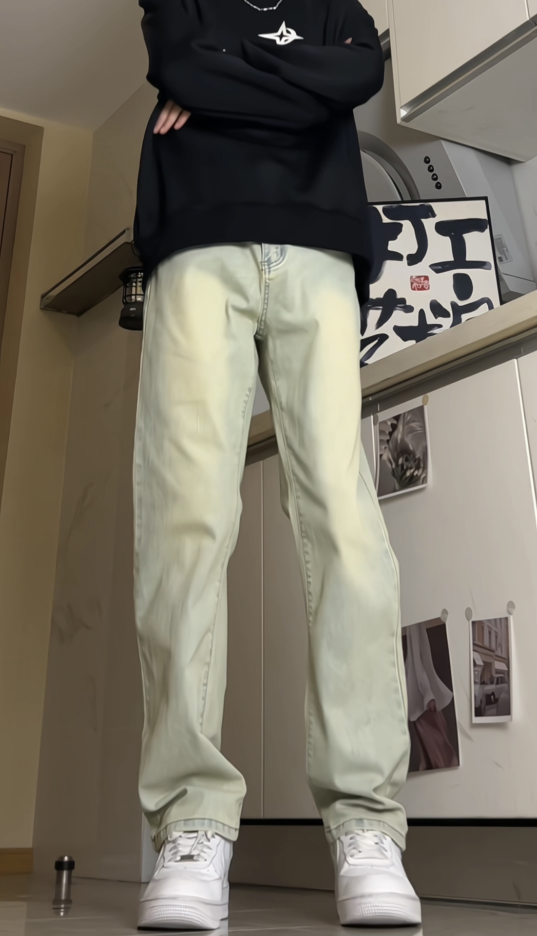 패셔너블한 옐로우 머드 컬러 청바지 남성용 봄, 가을, 겨울 2025 새로운 미국 트렌디 브랜드 하이 스트리트 슬림 스트레이트 마이크로 플레어 팬츠스토어 가기