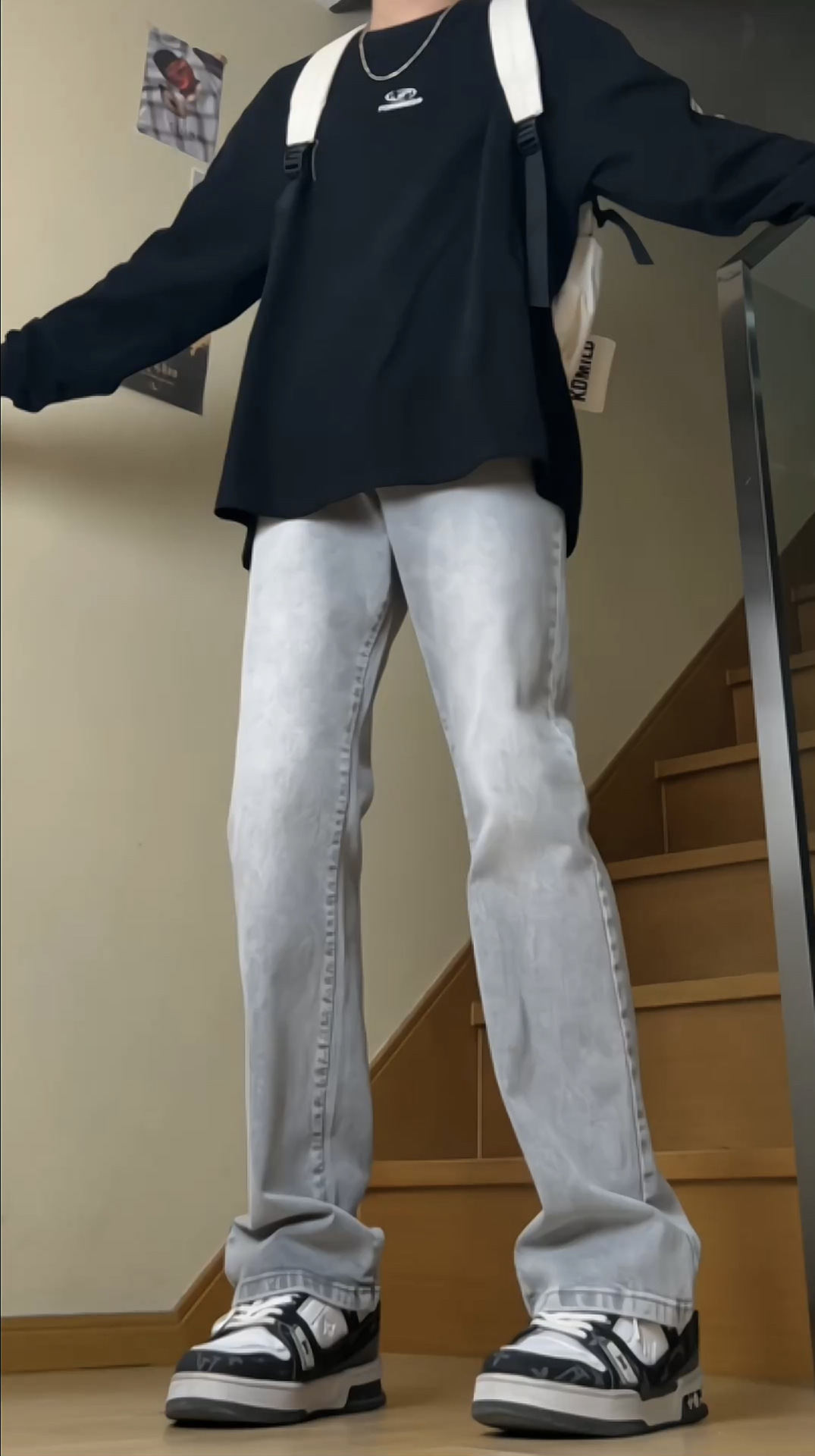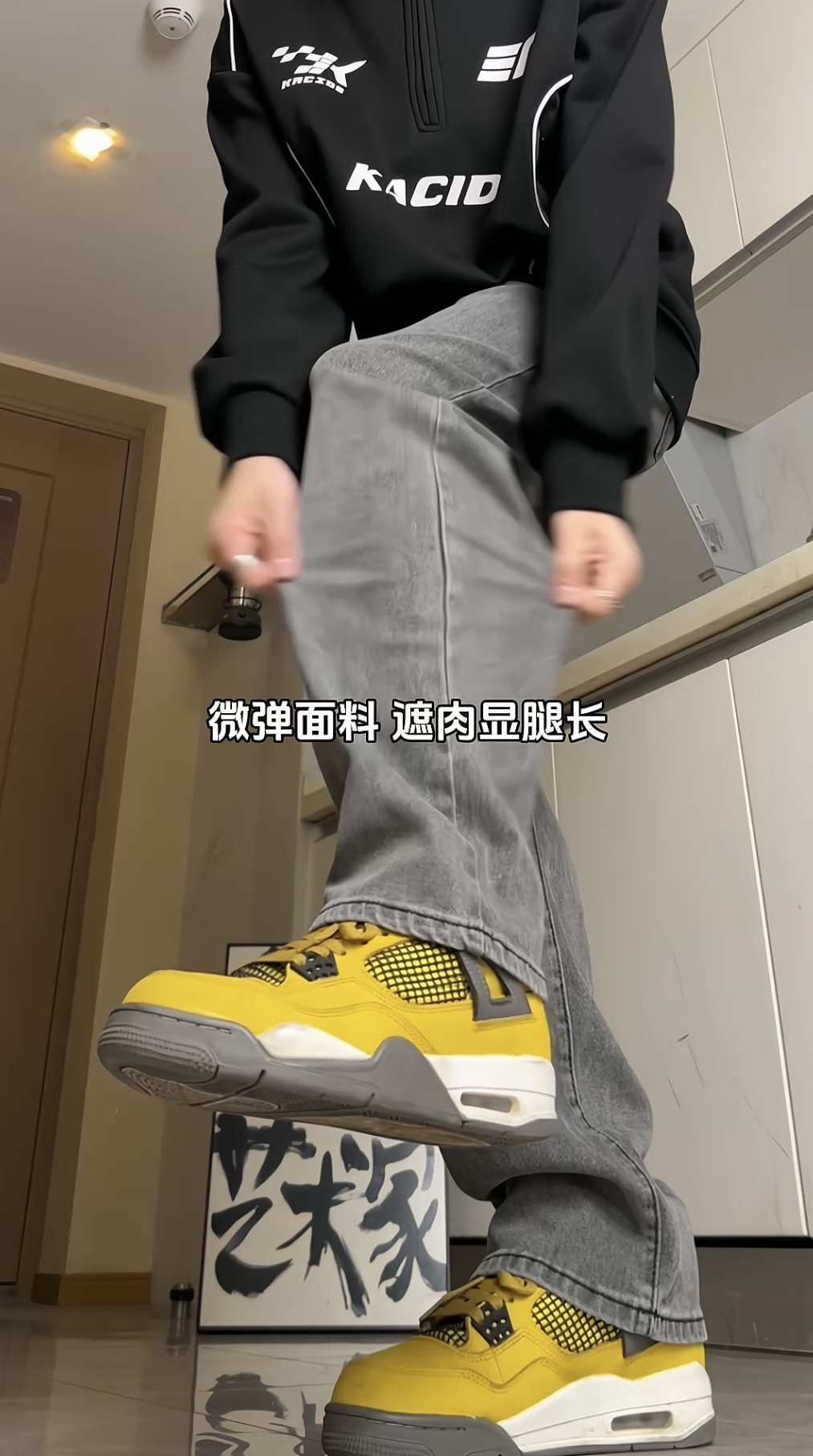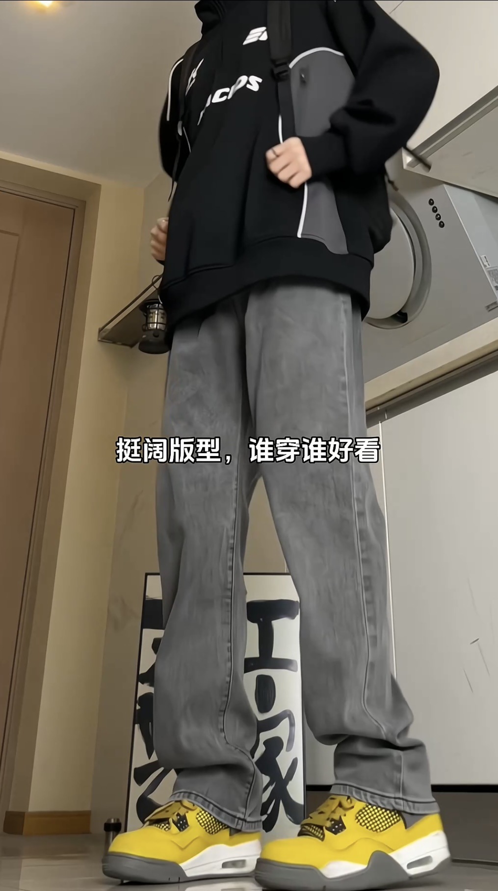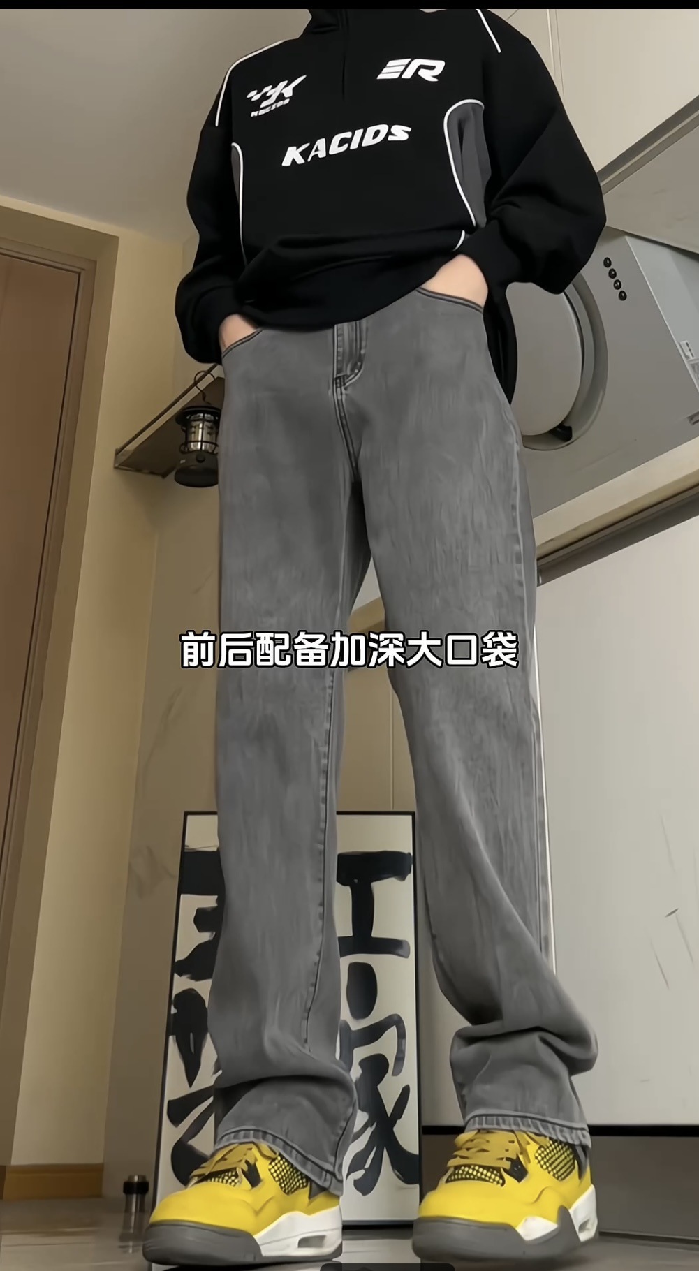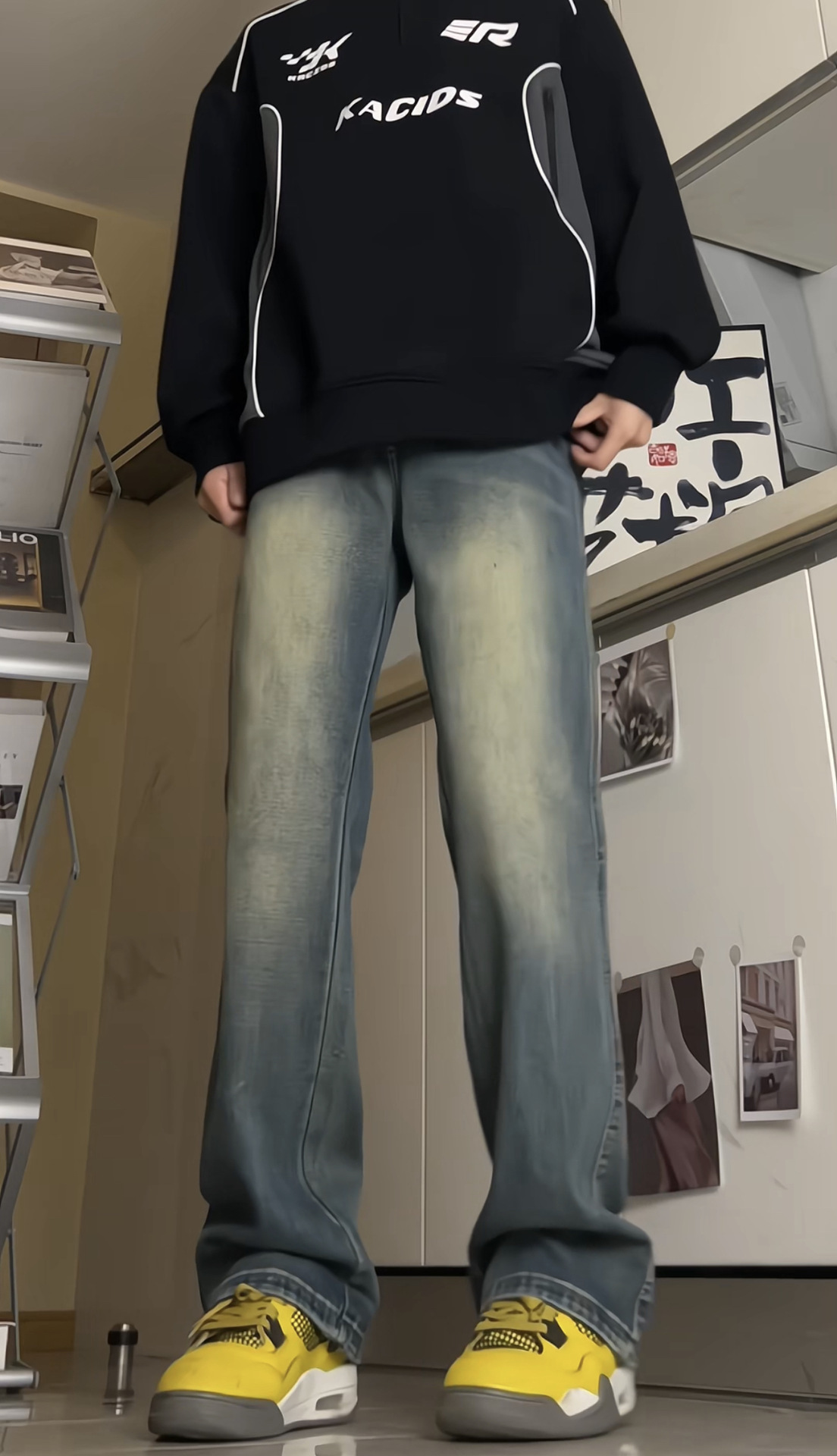 패셔너블한 옐로우 머드 컬러 청바지 남성용 봄, 가을, 겨울 2025 새로운 미국 트렌디 브랜드 하이 스트리트 슬림 스트레이트 마이크로 플레어 팬츠스토어 가기