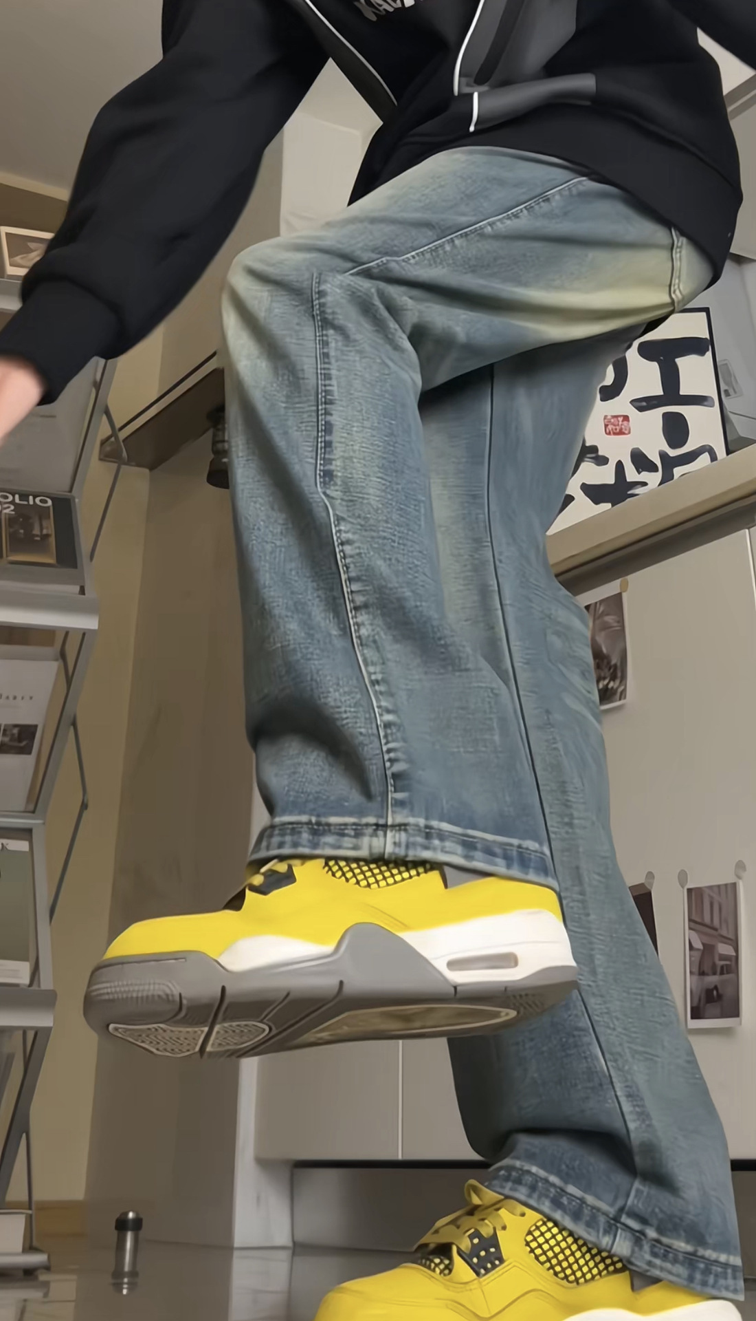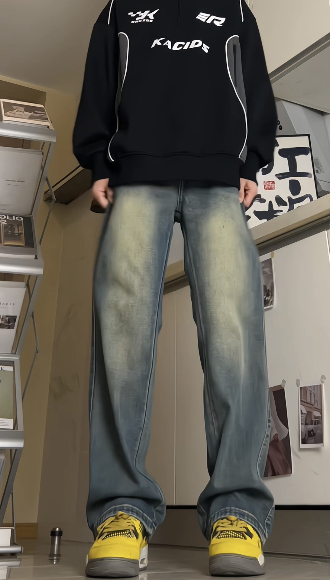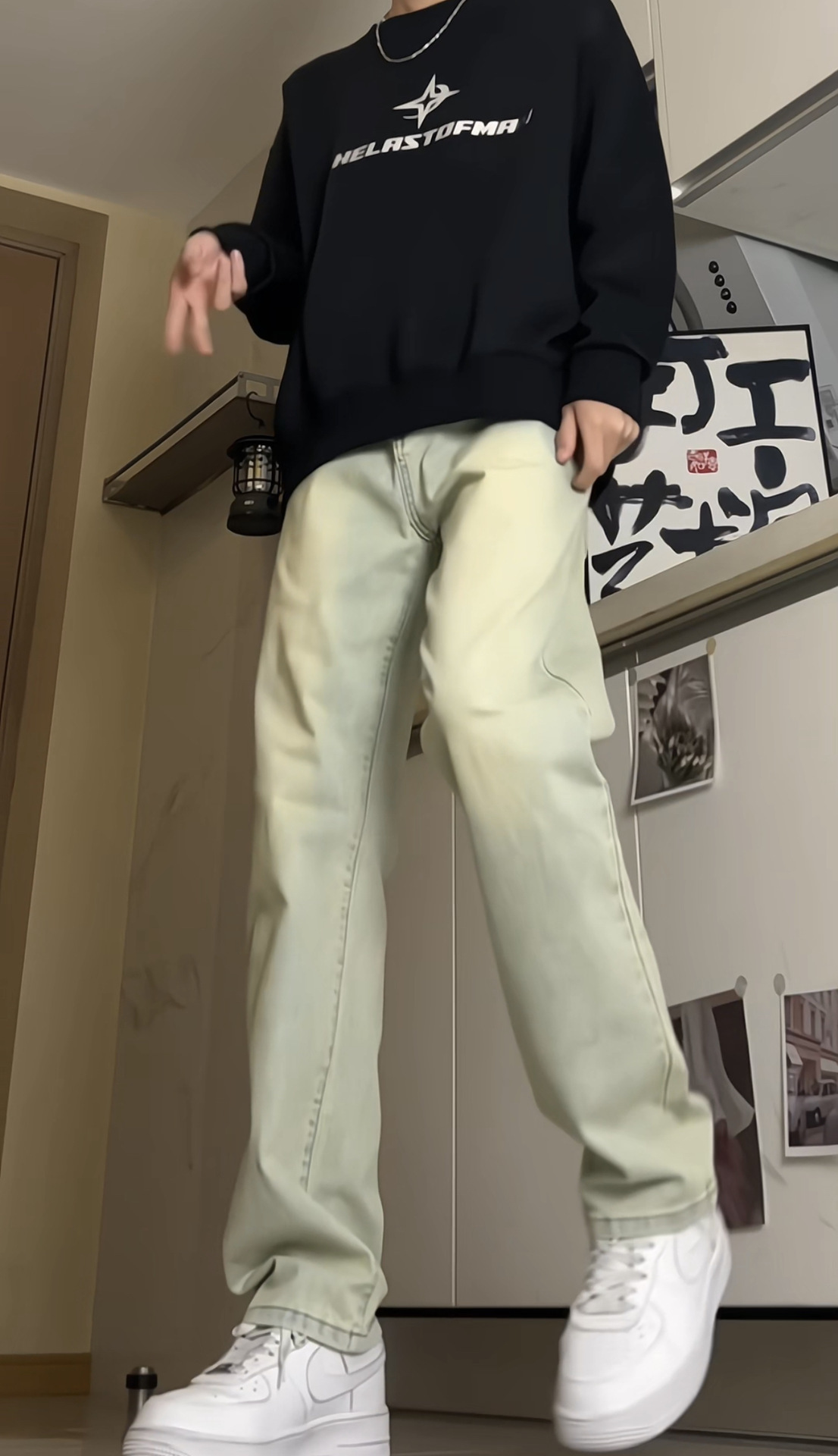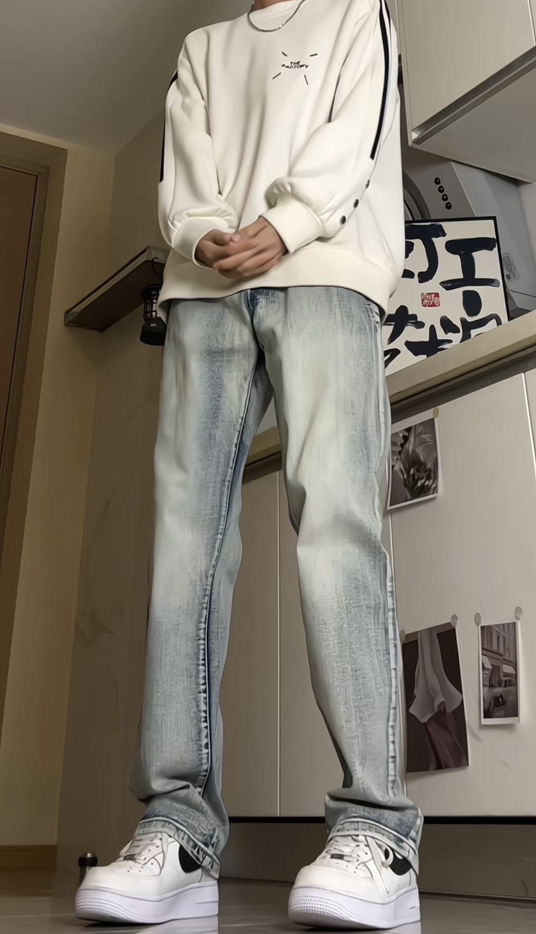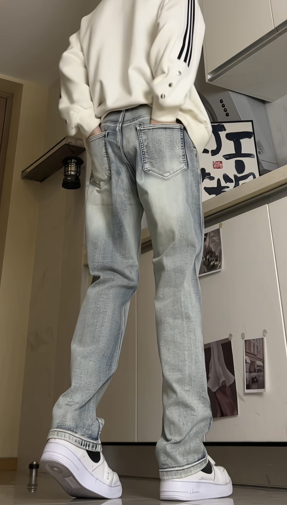 패셔너블한 옐로우 머드 컬러 청바지 남성용 봄, 가을, 겨울 2025 새로운 미국 트렌디 브랜드 하이 스트리트 슬림 스트레이트 마이크로 플레어 팬츠스토어 가기