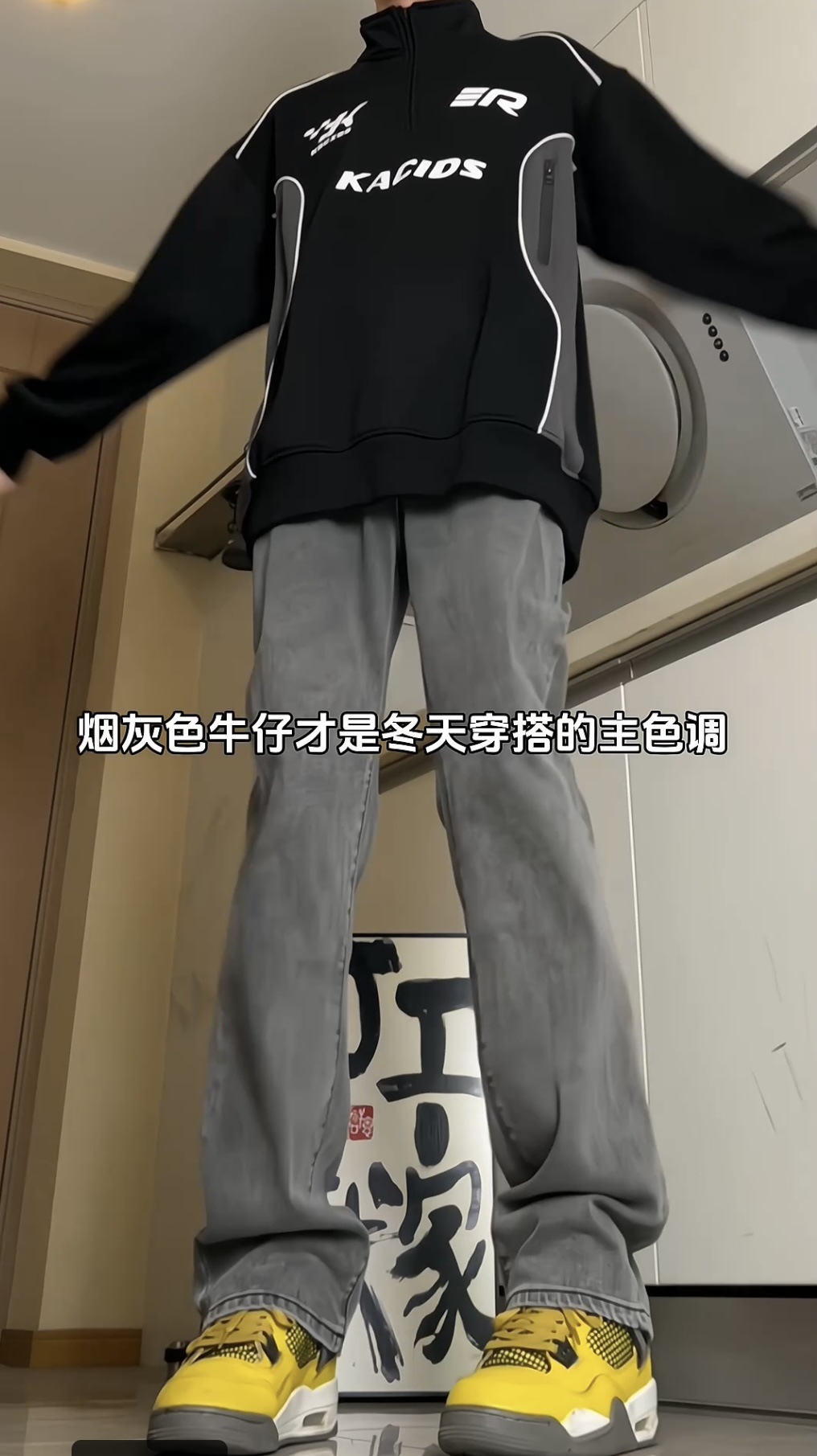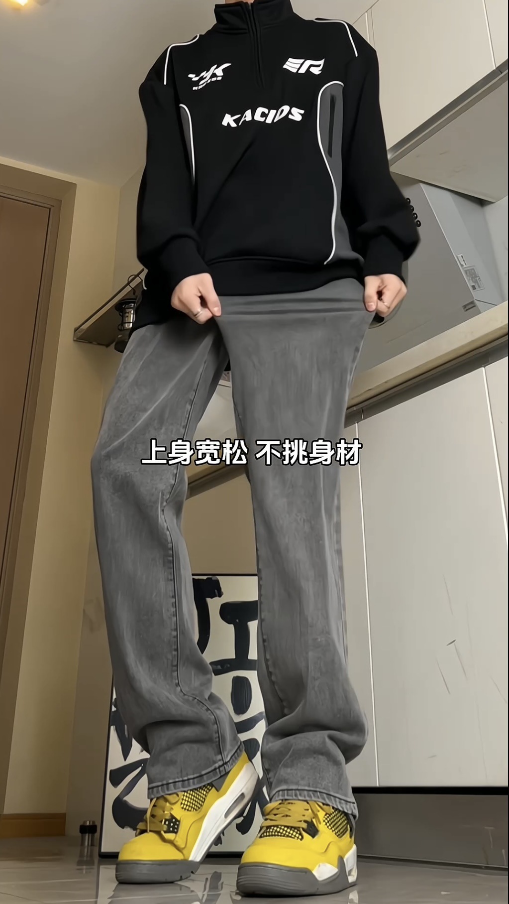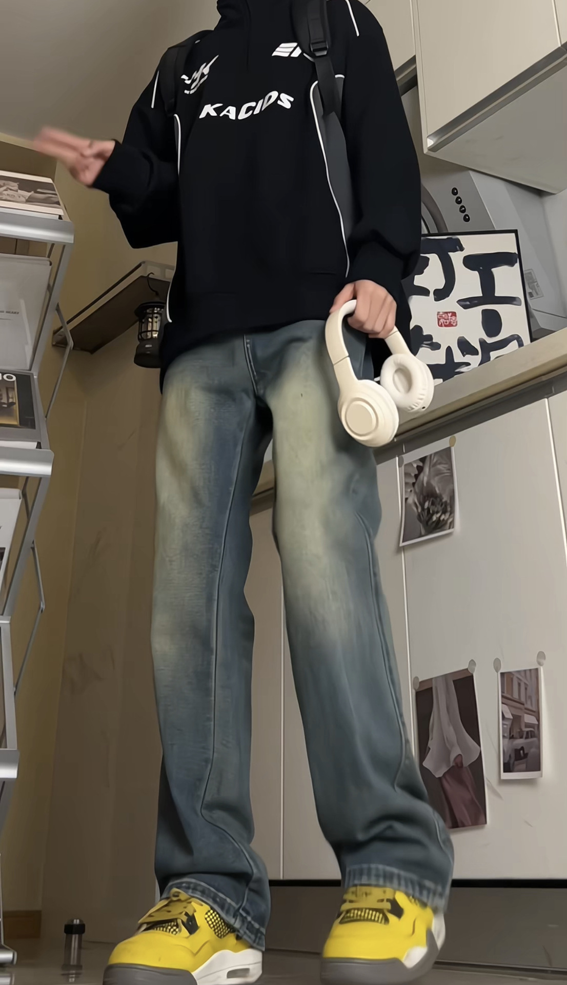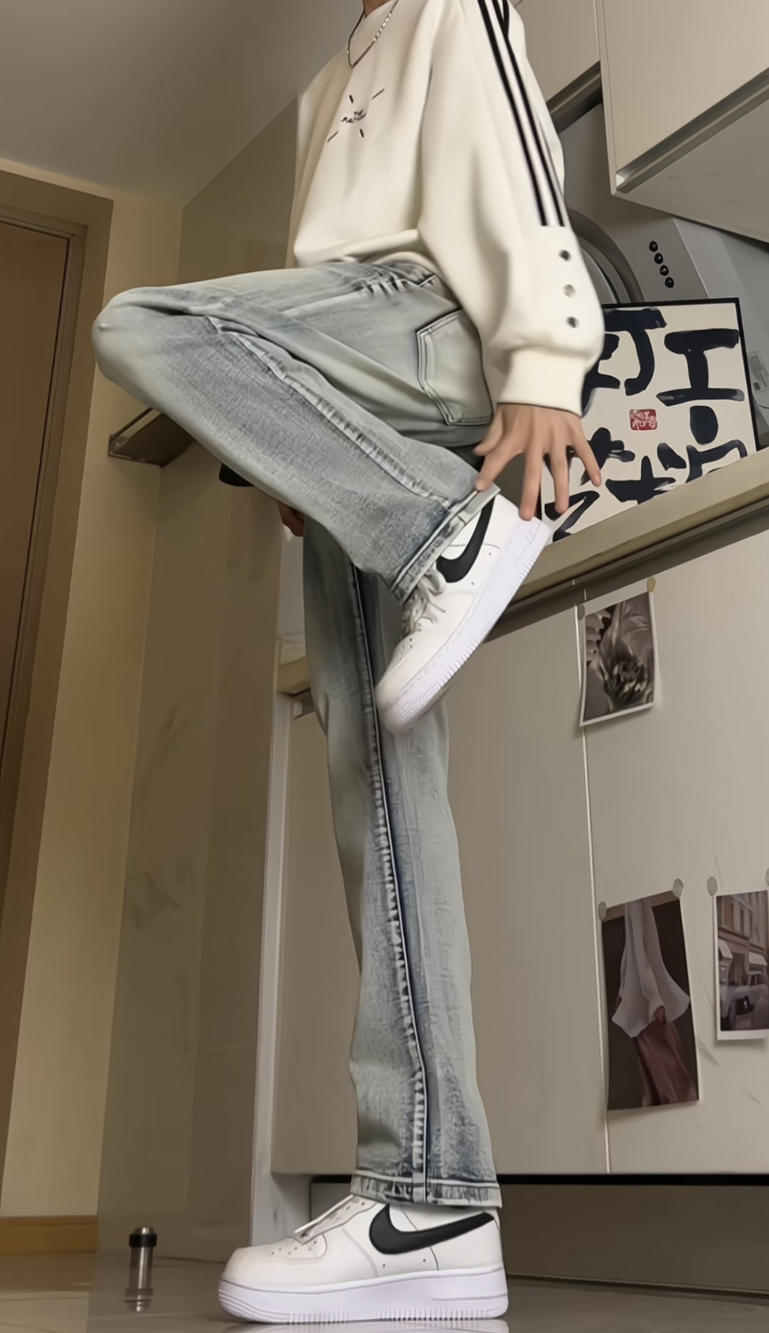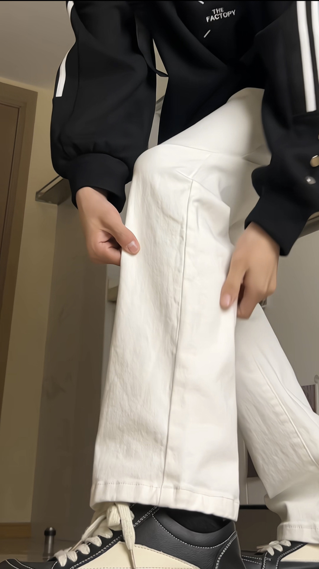 패셔너블한 옐로우 머드 컬러 청바지 남성용 봄, 가을, 겨울 2025 새로운 미국 트렌디 브랜드 하이 스트리트 슬림 스트레이트 마이크로 플레어 팬츠스토어 가기