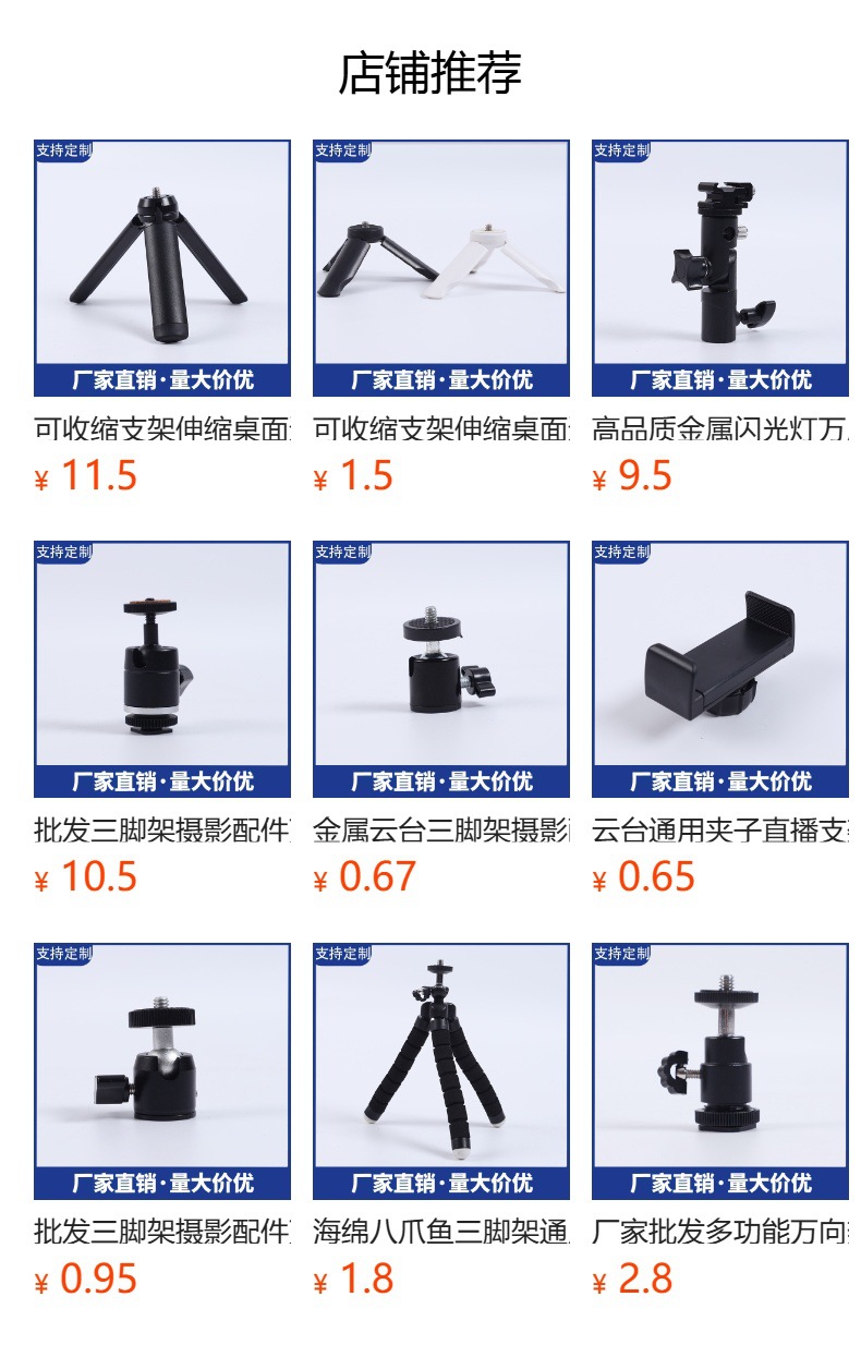 수축식 스탠드 텔레스코픽 데스크탑 미니 사진 카메라 삼각대 휴대 전화 카메라 스탠드 프로젝터 홀더