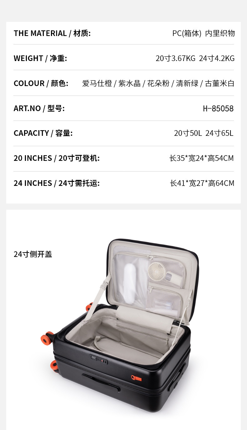 전면 개방형 트렁크 20inch 도파민 탑승 케이스 여성용 확장형 대용량 24inch 비즈니스 여행용 트롤리 케이스