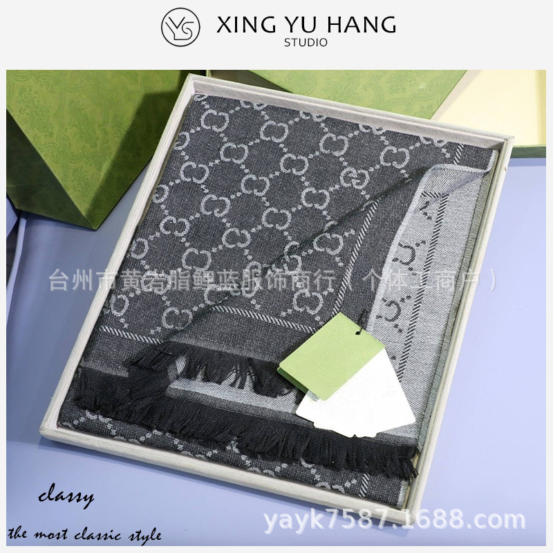 가을 겨울 신상 그레이 핑크 울 자카드 g 홈 스카프 여성용 레터 숄 캐시미어 따뜻한 블랙 그레이 스카프 이중 용도스토어 가기