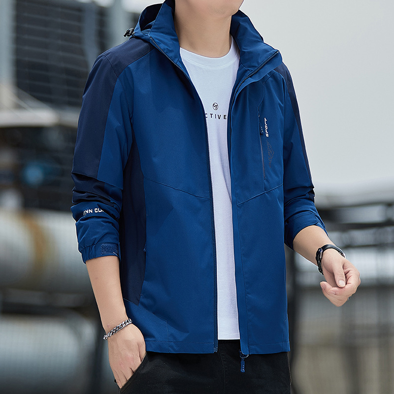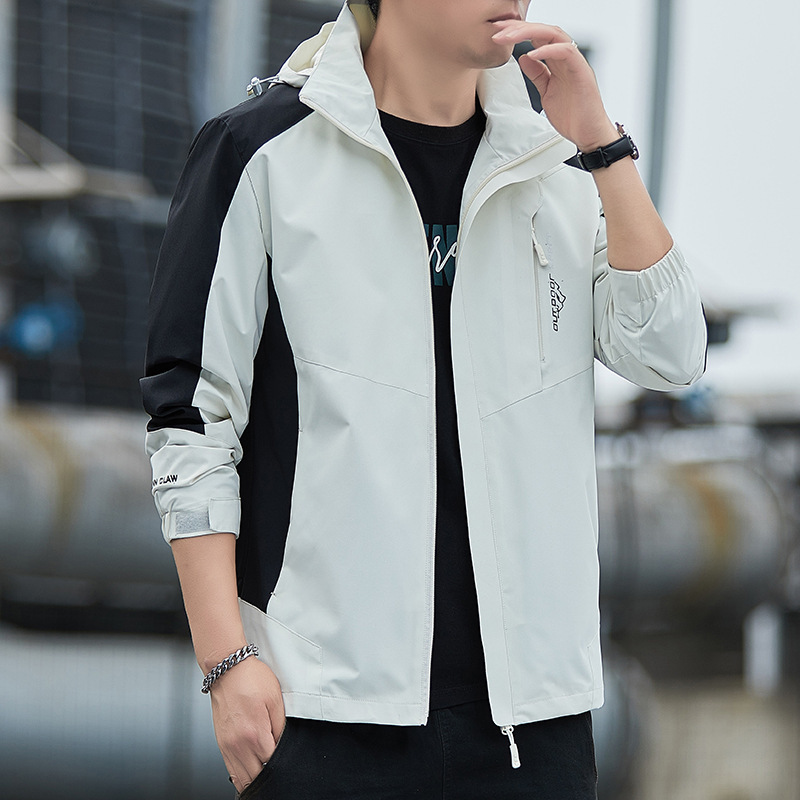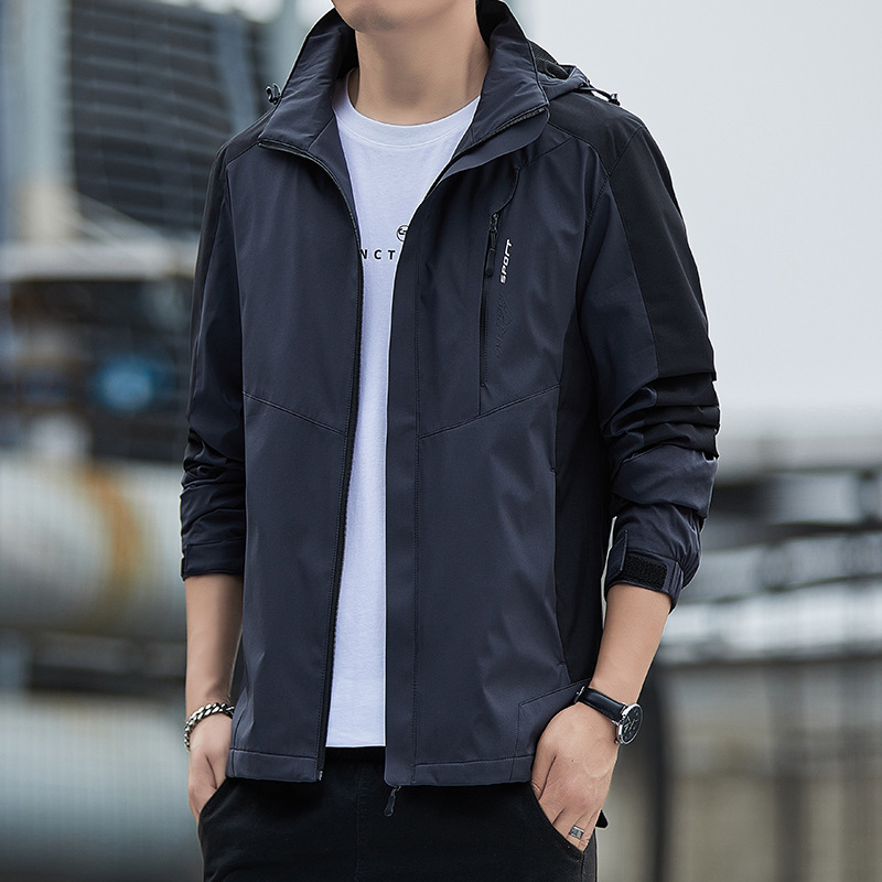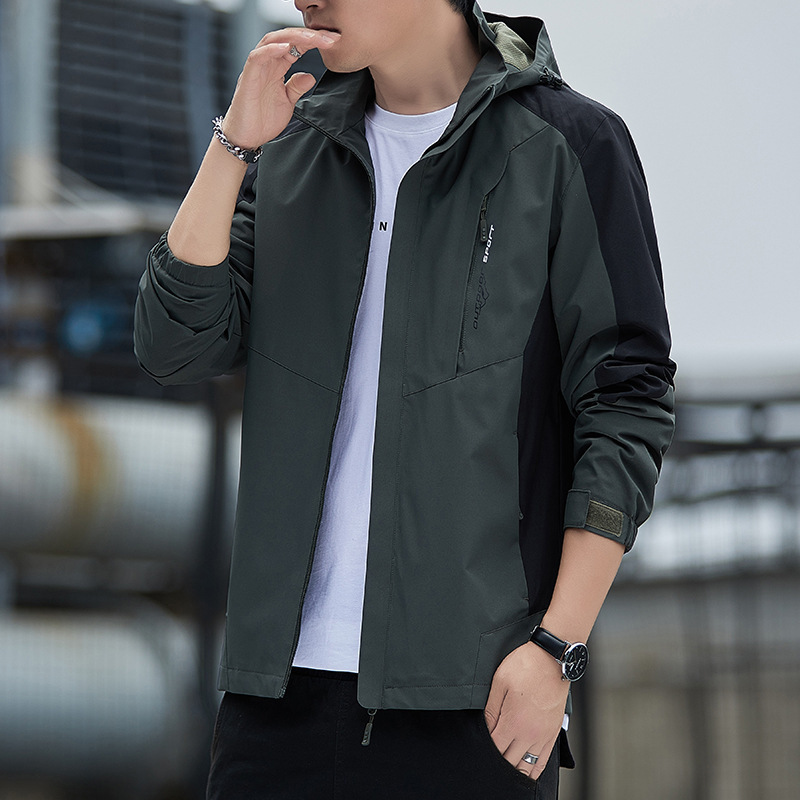 대외 무역 새로운 봄, 가을 재킷 남성 한국 스타일 트렌디 루즈 스탠드 칼라 캐주얼 재킷 남성 심플 후드 탑