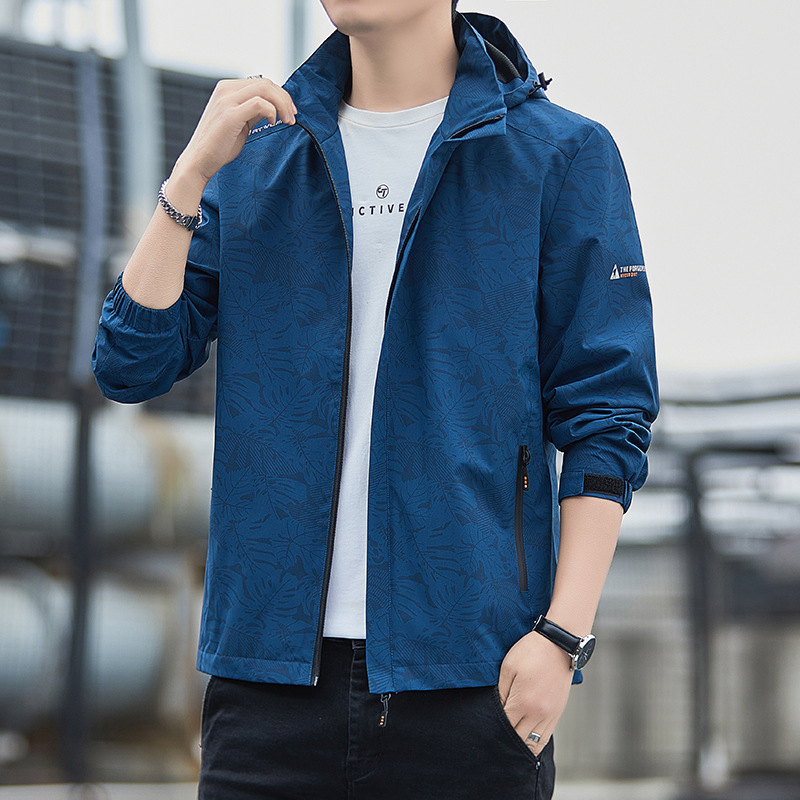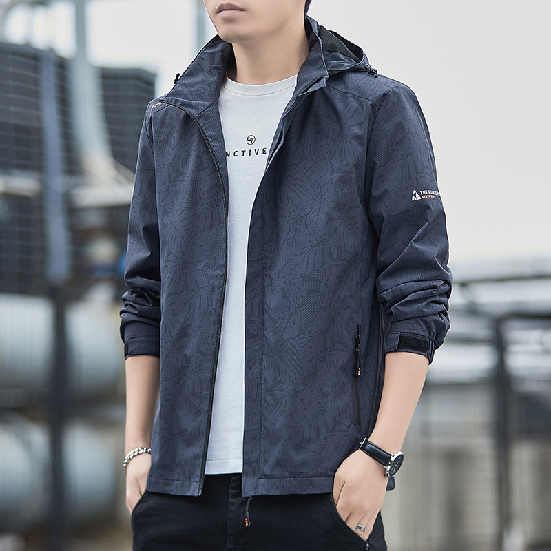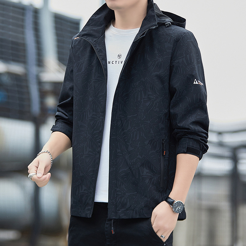 대외 무역 새로운 봄, 가을 재킷 남성 한국 스타일 트렌디 루즈 스탠드 칼라 캐주얼 재킷 남성 심플 후드 탑스토어 가기