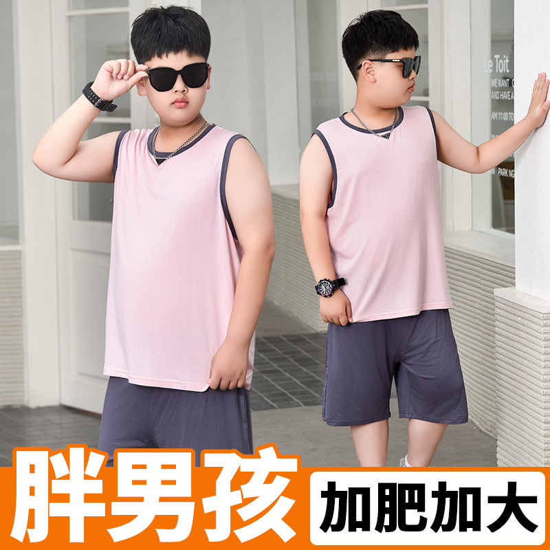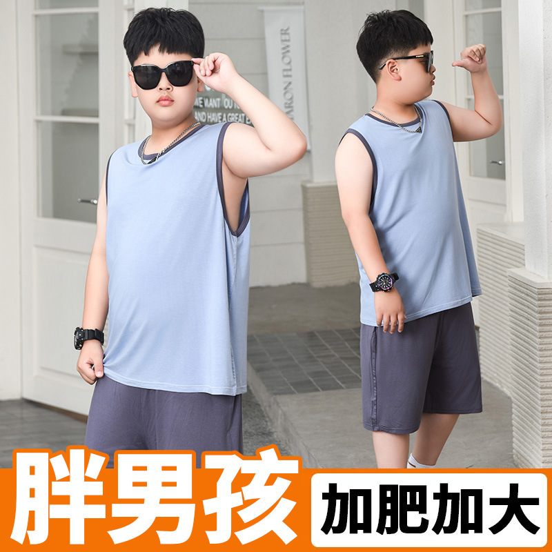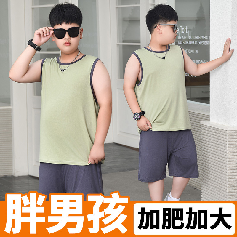 뚱뚱한 소년 모달 여름 웨어러블 조끼 정장 큰 어린이 가정복 플러스 뚱뚱한 어린이 뚱뚱한 소년스토어 가기