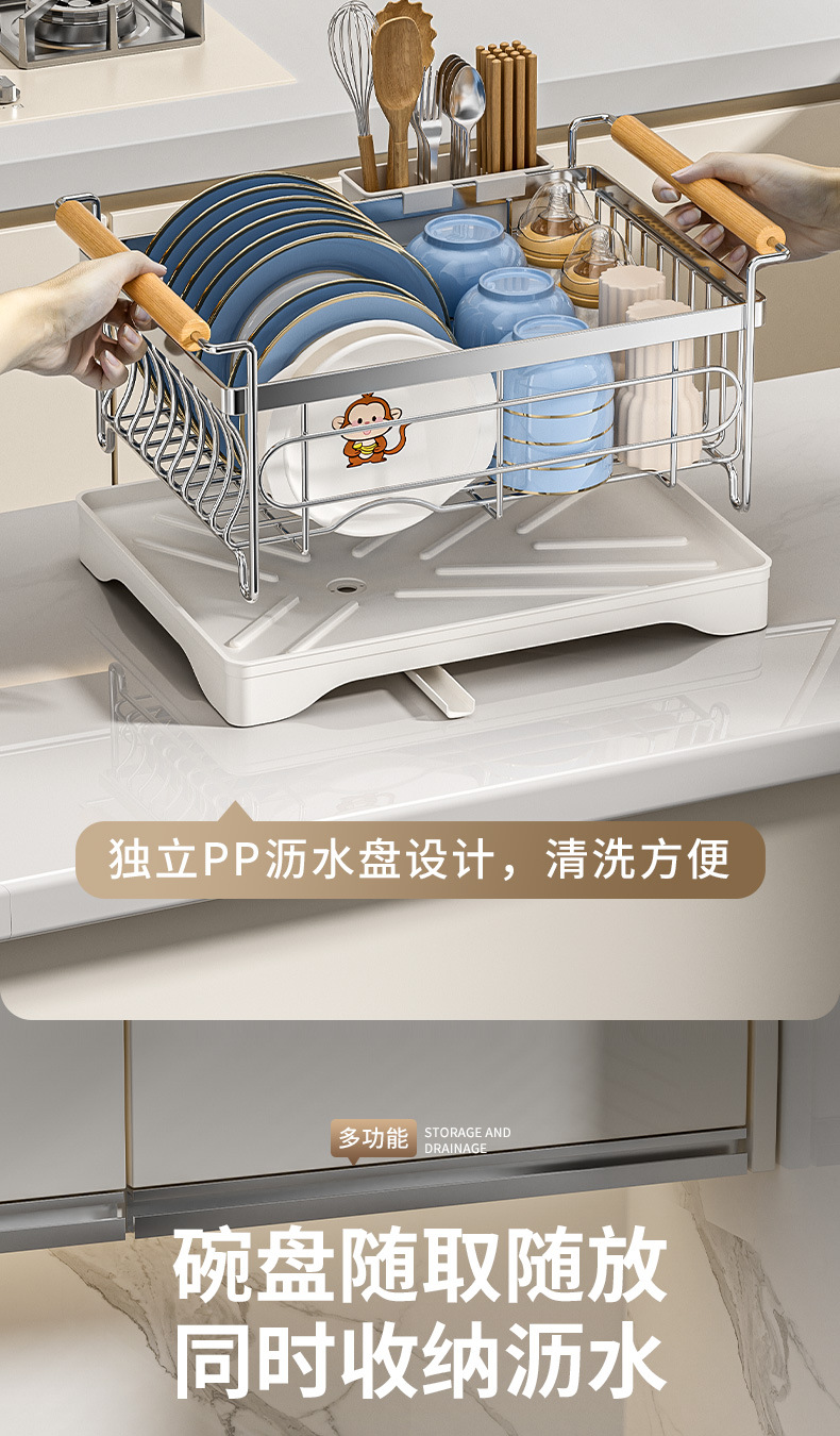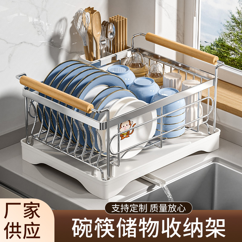 주방 수납 선반 스테인레스 스틸 그릇 바구니 그릇 랙 조리대 가정용 배수구 그릇 및 접시 랙 그릇 및 젓가락 보관