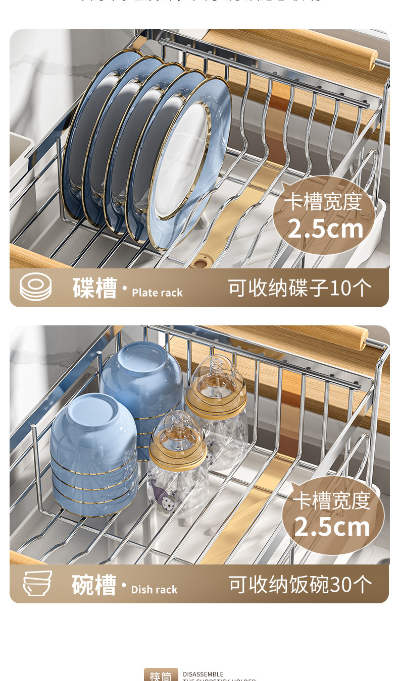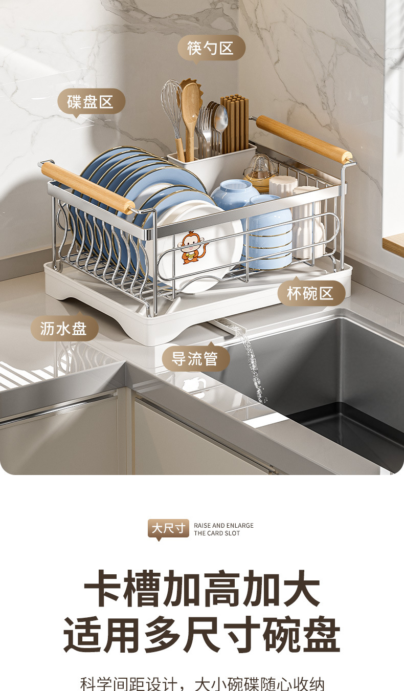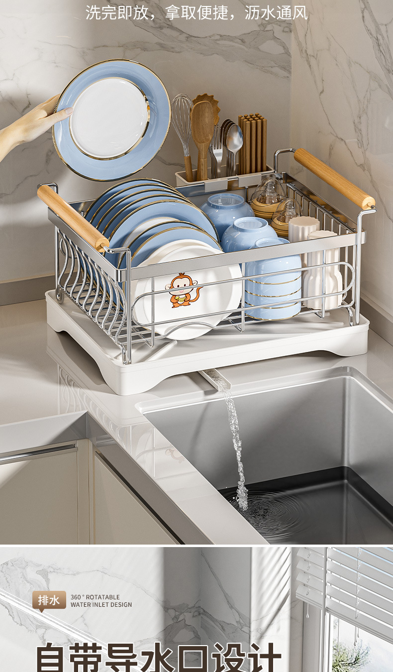 주방 수납 선반 스테인레스 스틸 그릇 바구니 그릇 랙 조리대 가정용 배수구 그릇 및 접시 랙 그릇 및 젓가락 보관스토어 가기