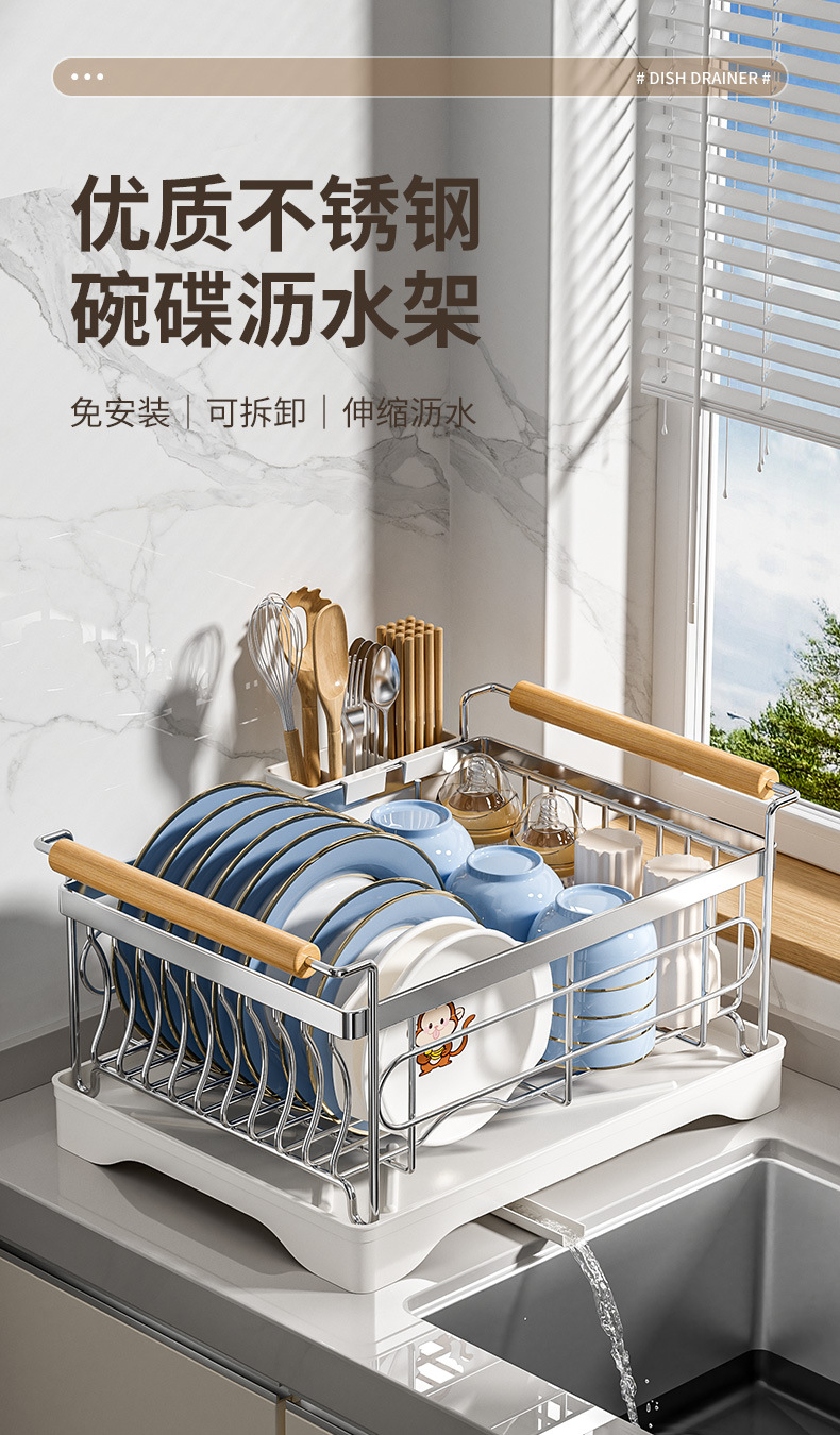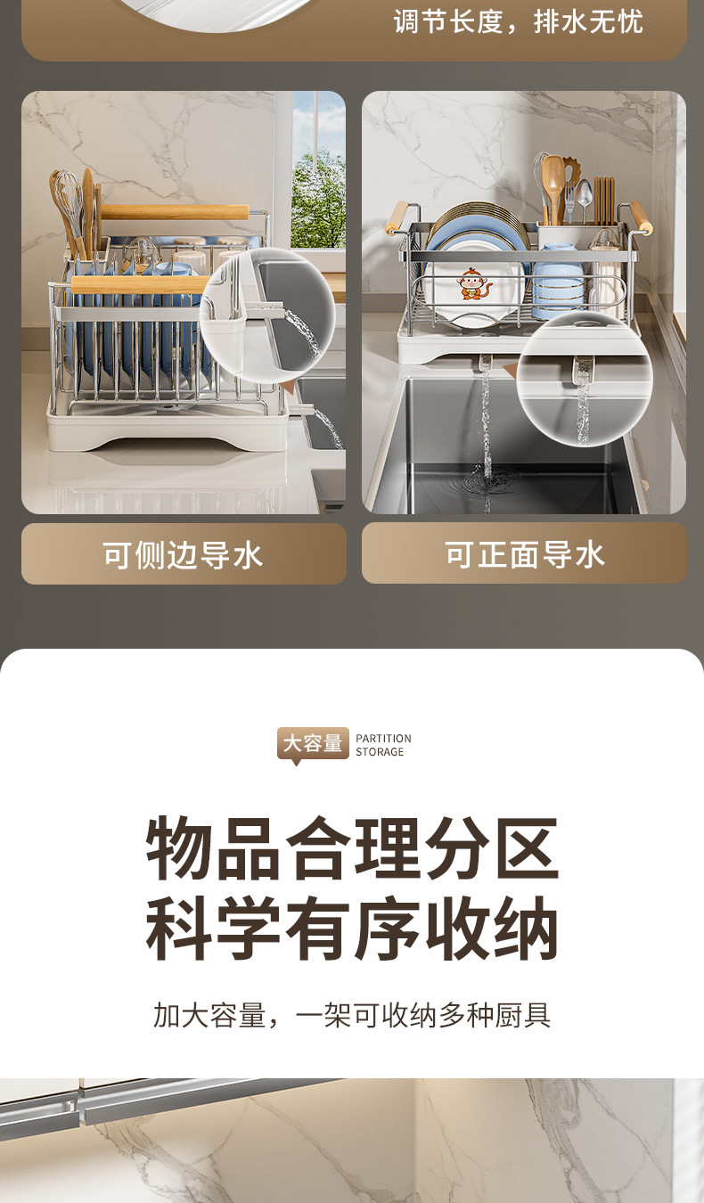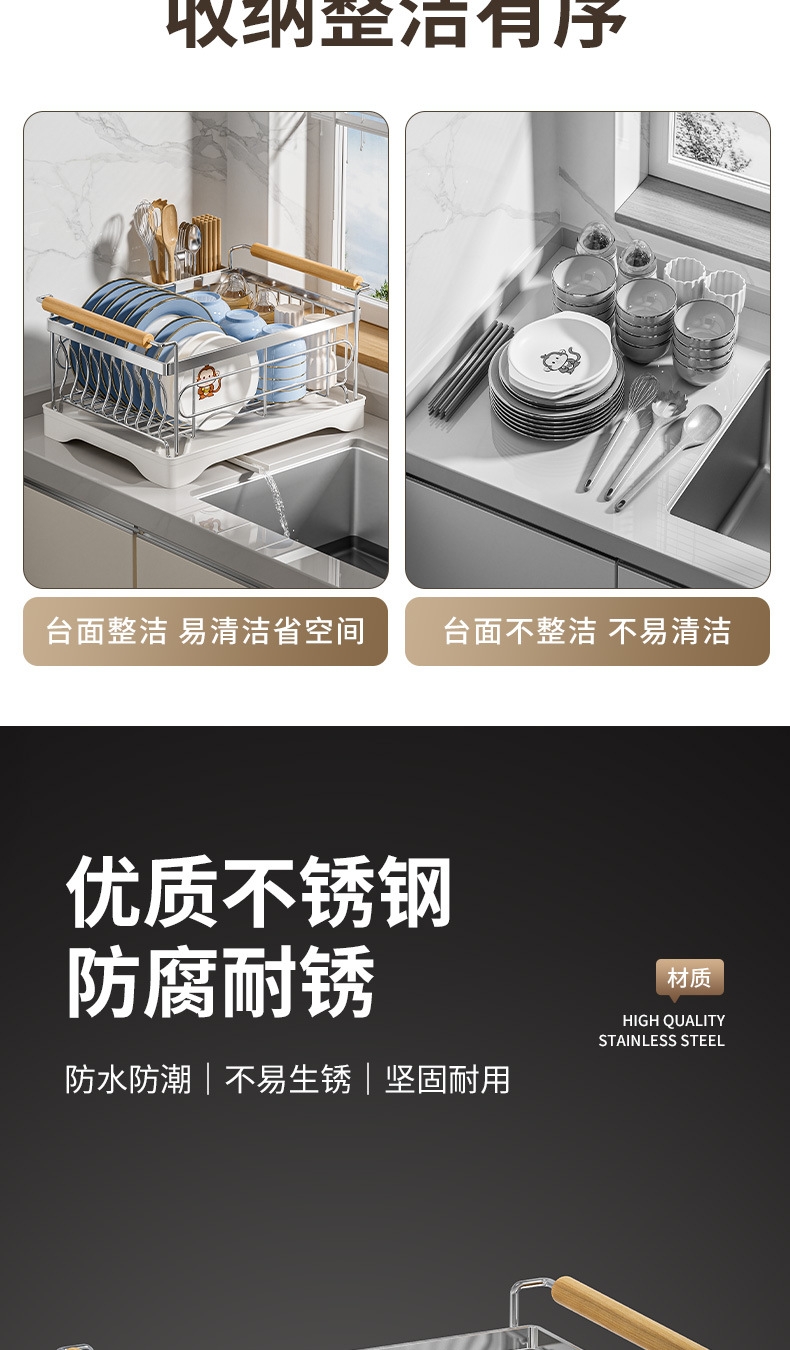 주방 수납 선반 스테인레스 스틸 그릇 바구니 그릇 랙 조리대 가정용 배수구 그릇 및 접시 랙 그릇 및 젓가락 보관스토어 가기
