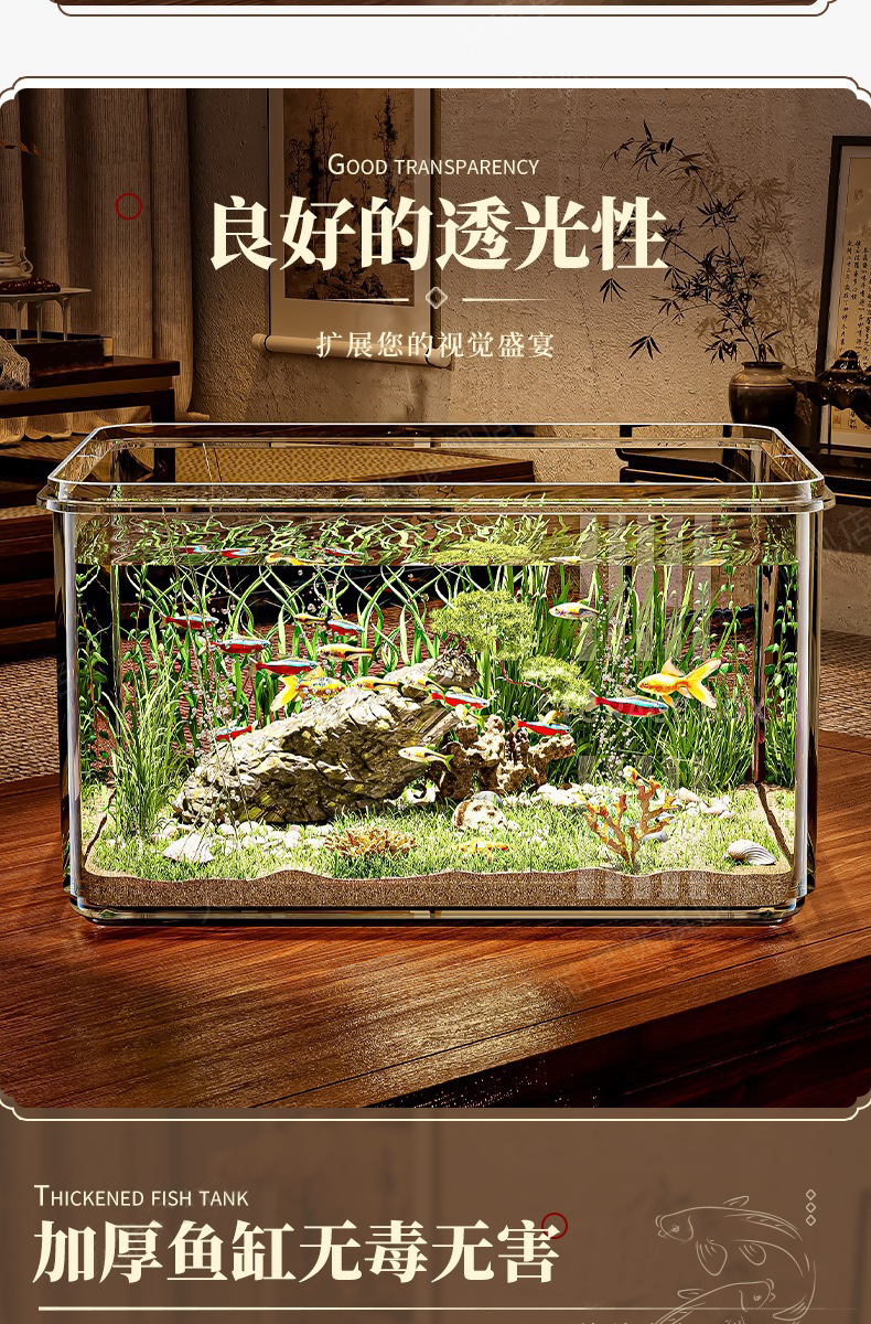투명한 수조, 소형 데스크탑 홈 오피스 금붕어 수조, 미니 사각형 아크릴 수조, 두꺼운 거북이 수조스토어 가기