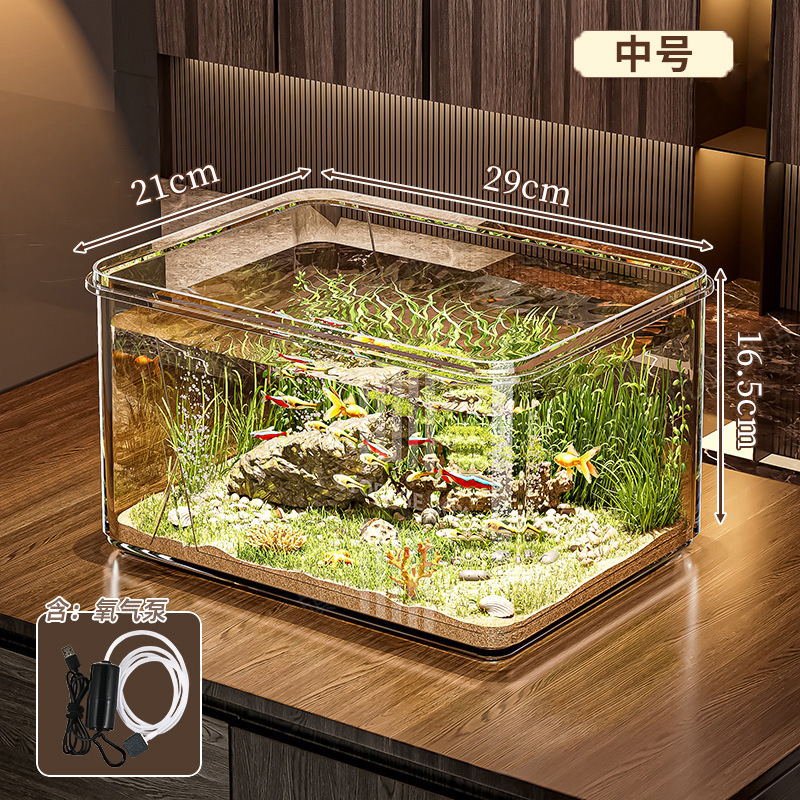 투명한 수조, 소형 데스크탑 홈 오피스 금붕어 수조, 미니 사각형 아크릴 수조, 두꺼운 거북이 수조
