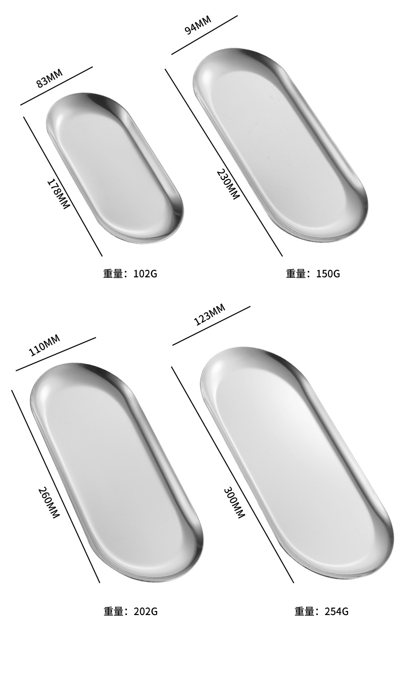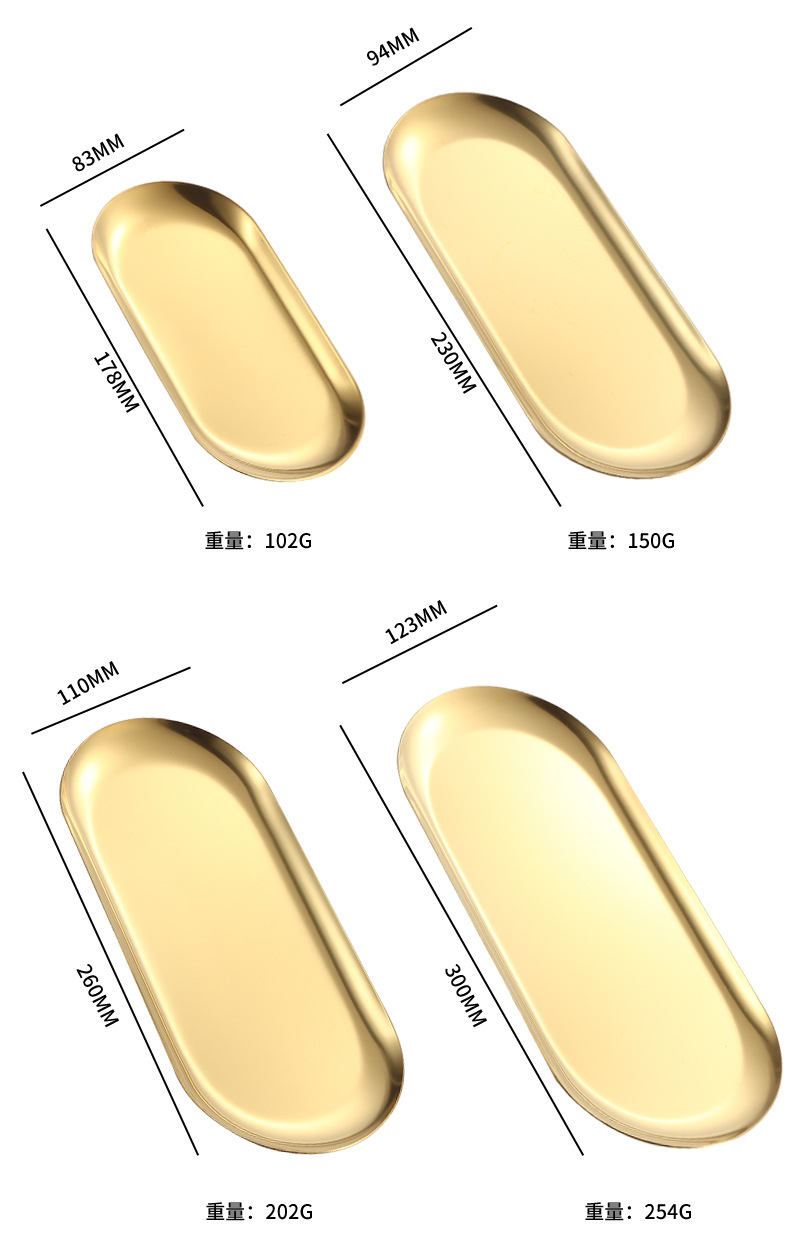 국경 간 제조 업체 도매 스테인레스 스틸 타원형 접시 레스토랑 디저트 접시 트레이 한국 요리 바베큐 황금 접시