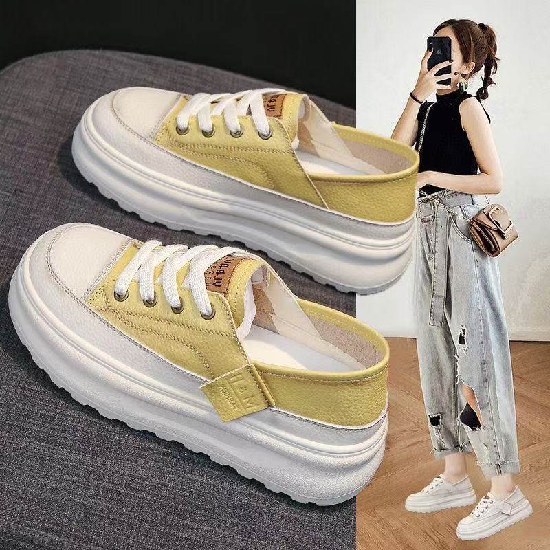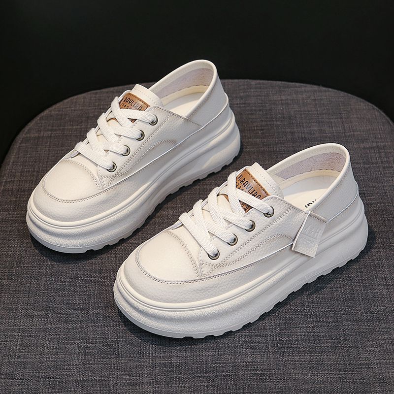 여성을위한 대외 무역 PU 가죽 복고풍 색상 연마 흰색 신발 2025 봄과 가을 새로운 두꺼운 밑창 높이 증가 다목적 편안한 캐주얼 운동화스토어 가기