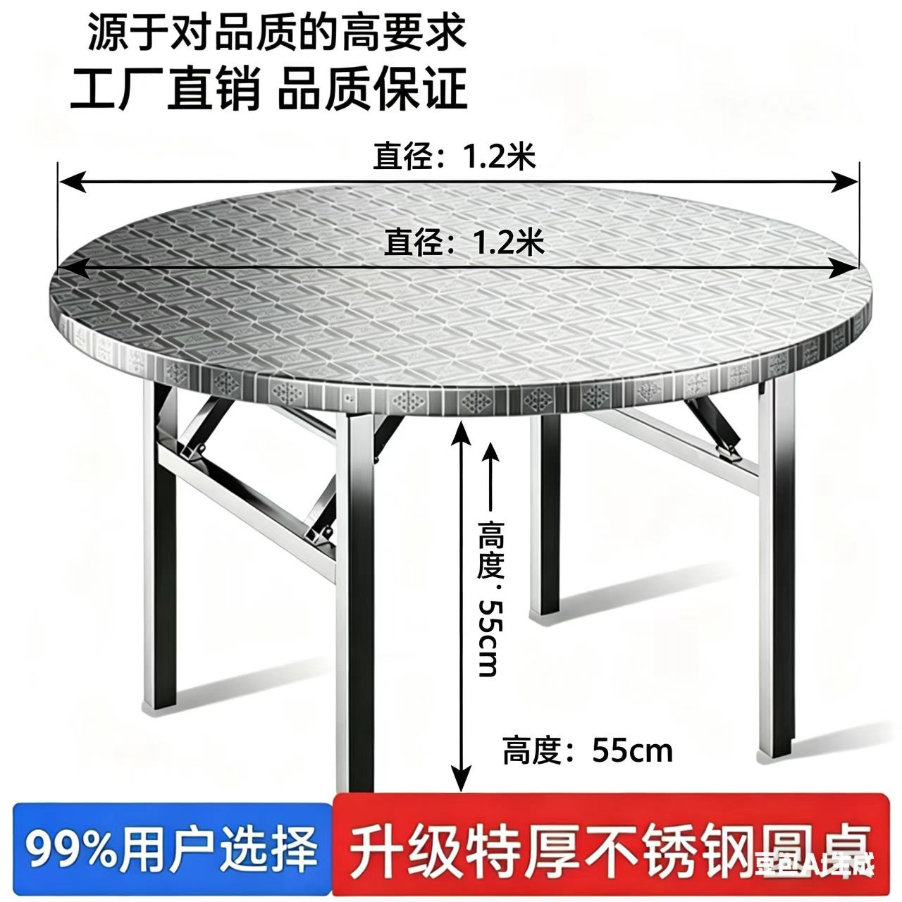 • 스테인레스 스틸 둥근 사각형 테이블 길이 90 폭 90 높이 55 높이 설치 필요 없음
