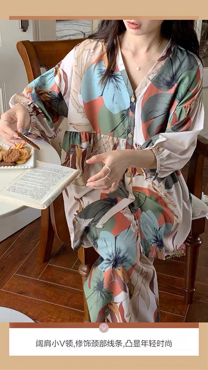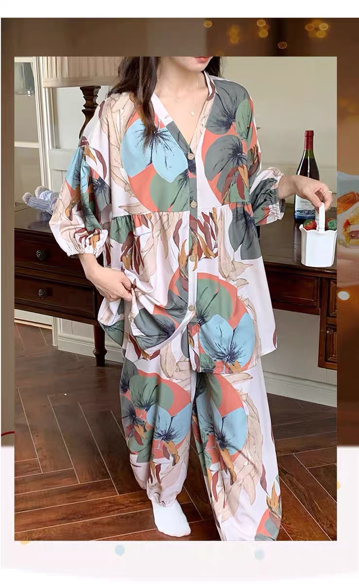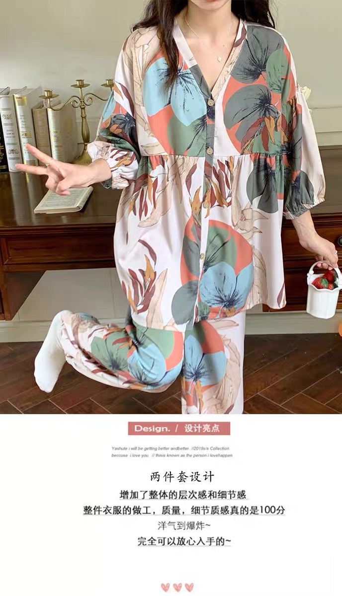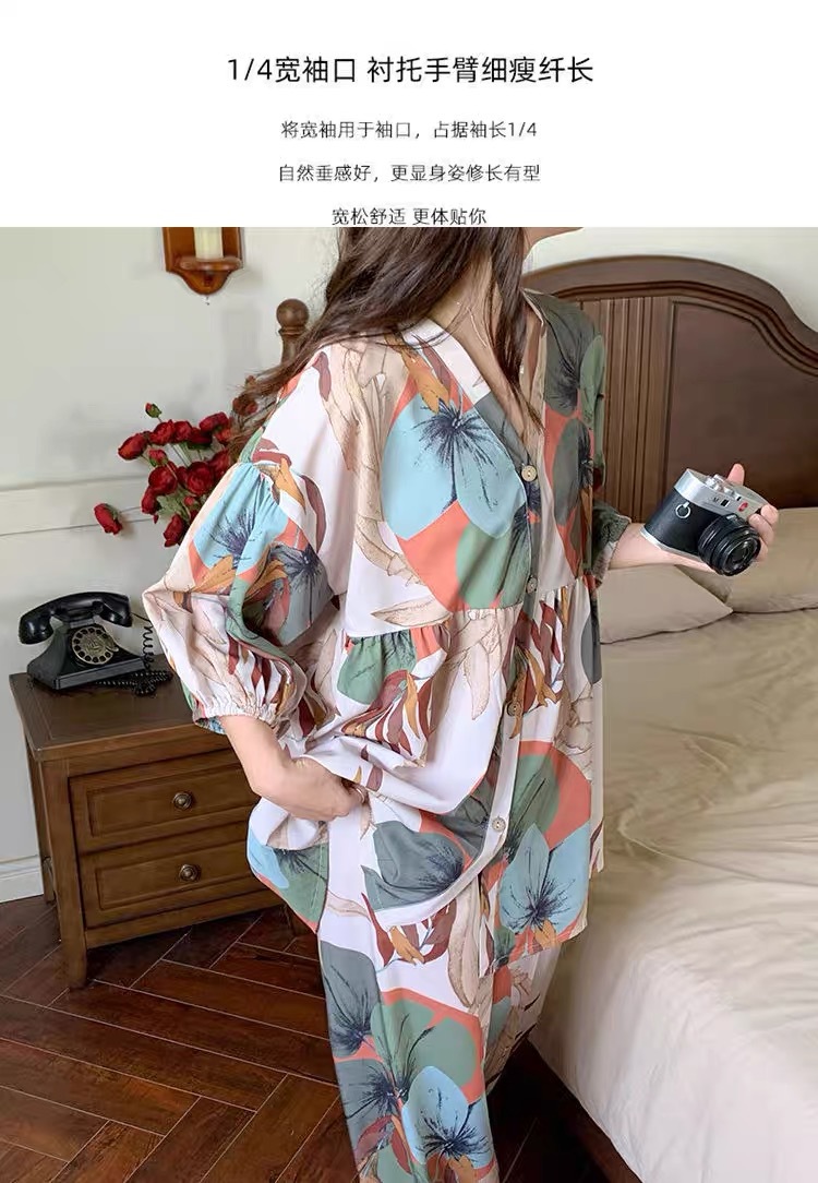 러시아에서 인기 있는 여성용 잠옷, 패셔너블하고 캐주얼한 인스타 감성의 7부 소매 봄, 여름, 가을 홈웨어 투피스 세트스토어 가기