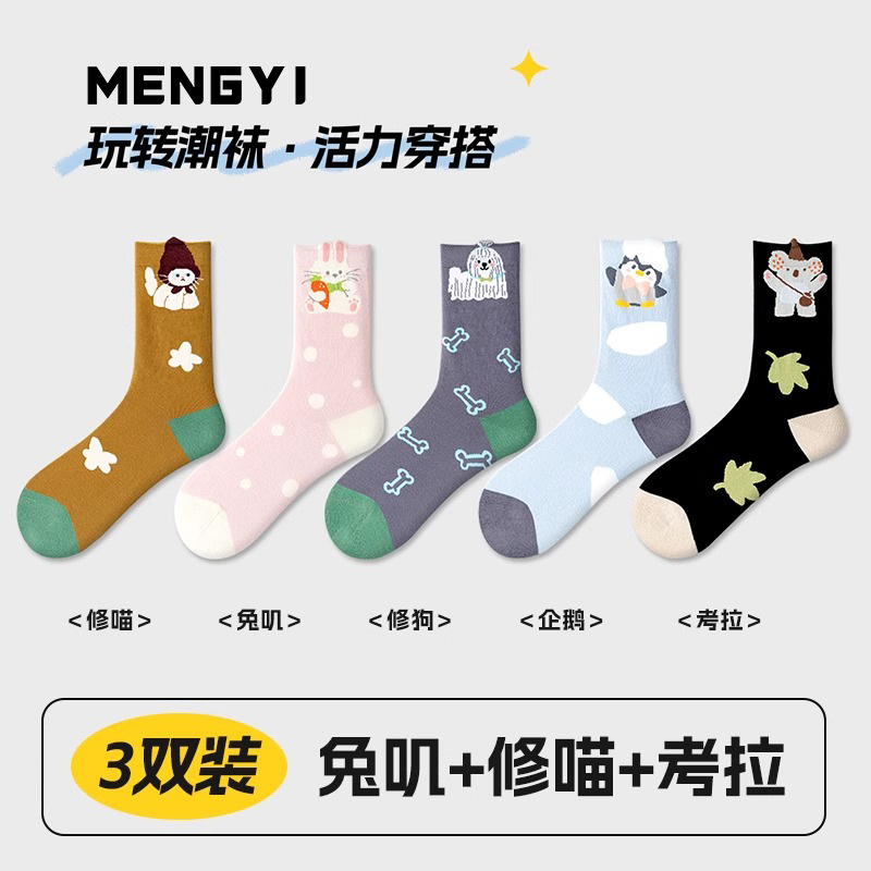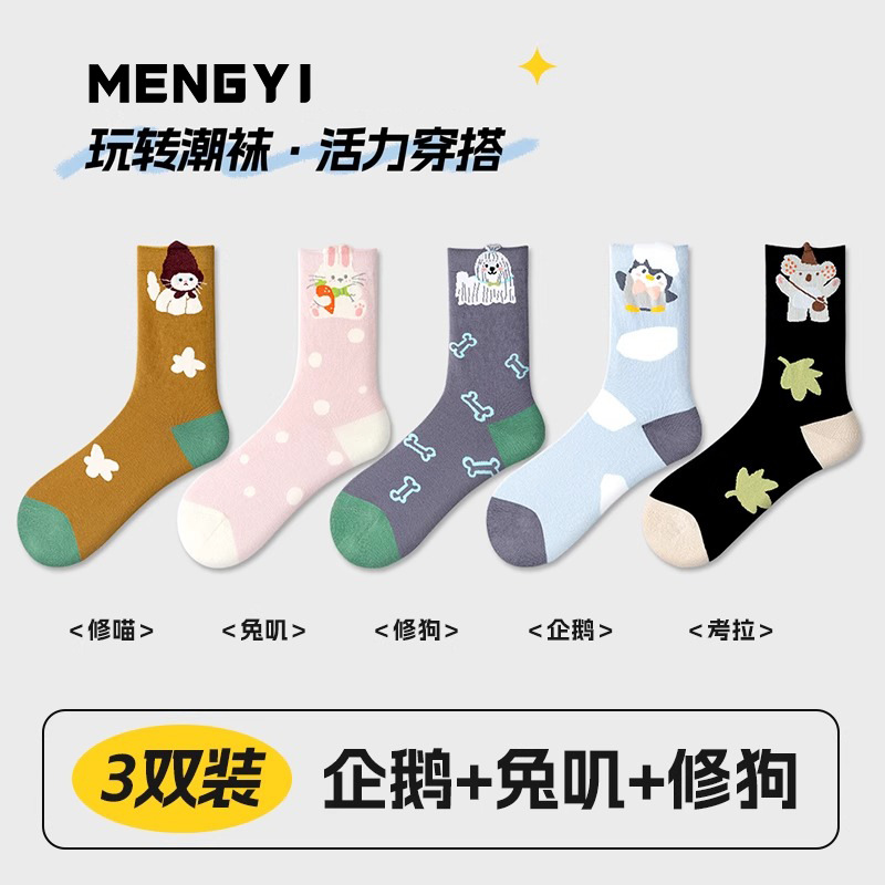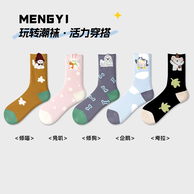 여름 여성용 귀여운 양말, 얇고 재미있는 종아리 중간 양말, 여성용 트렌디한 만화 귀여운 양말, Zhujie 도매스토어 가기