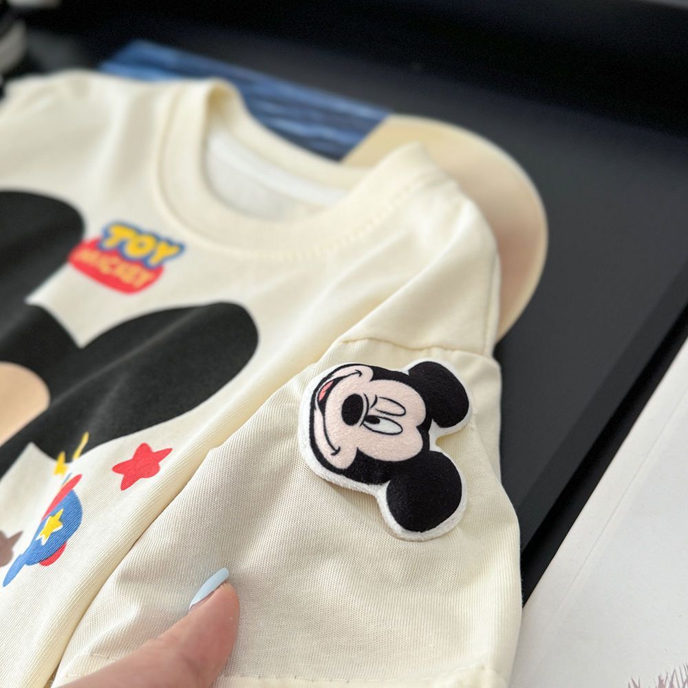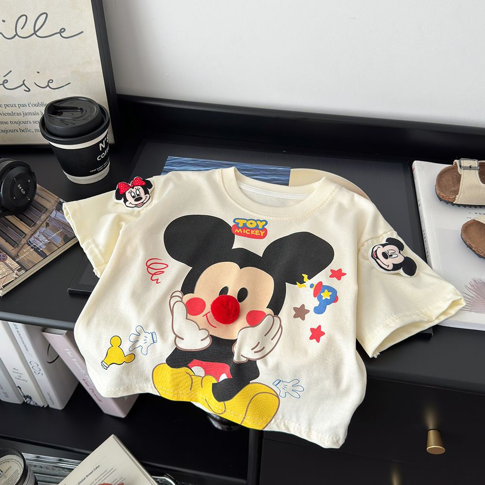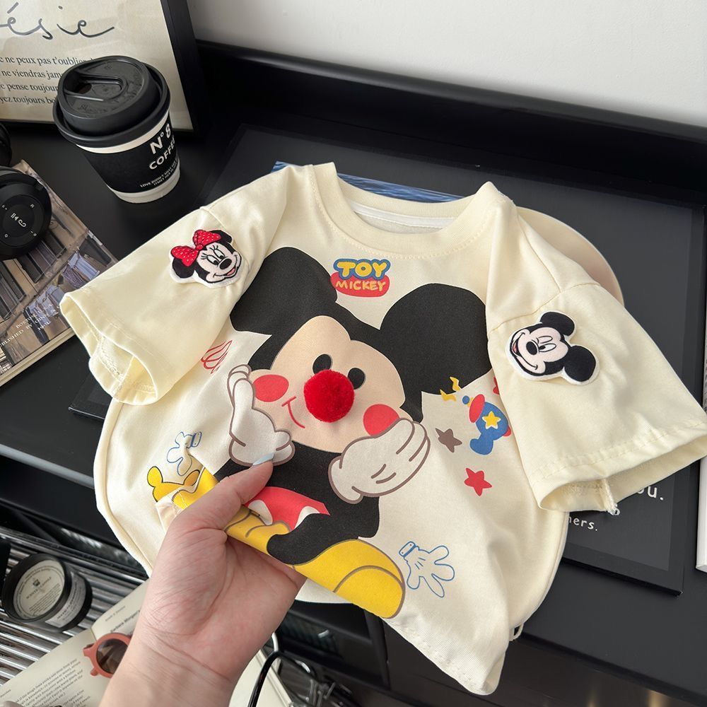 소년과 소녀를 위한 만화 스타일 프린트 반팔 티셔츠, 중소형 아동복, 아기의 루즈하고 다재다능한 바닥 셔츠스토어 가기