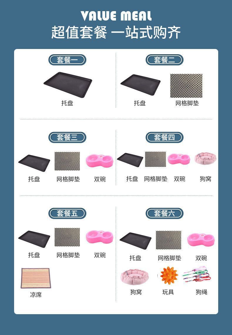 • 케이지(트레이 + 이중그릇 + 발패드 + 개집 + 장난감 + 개목줄)