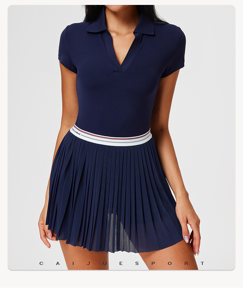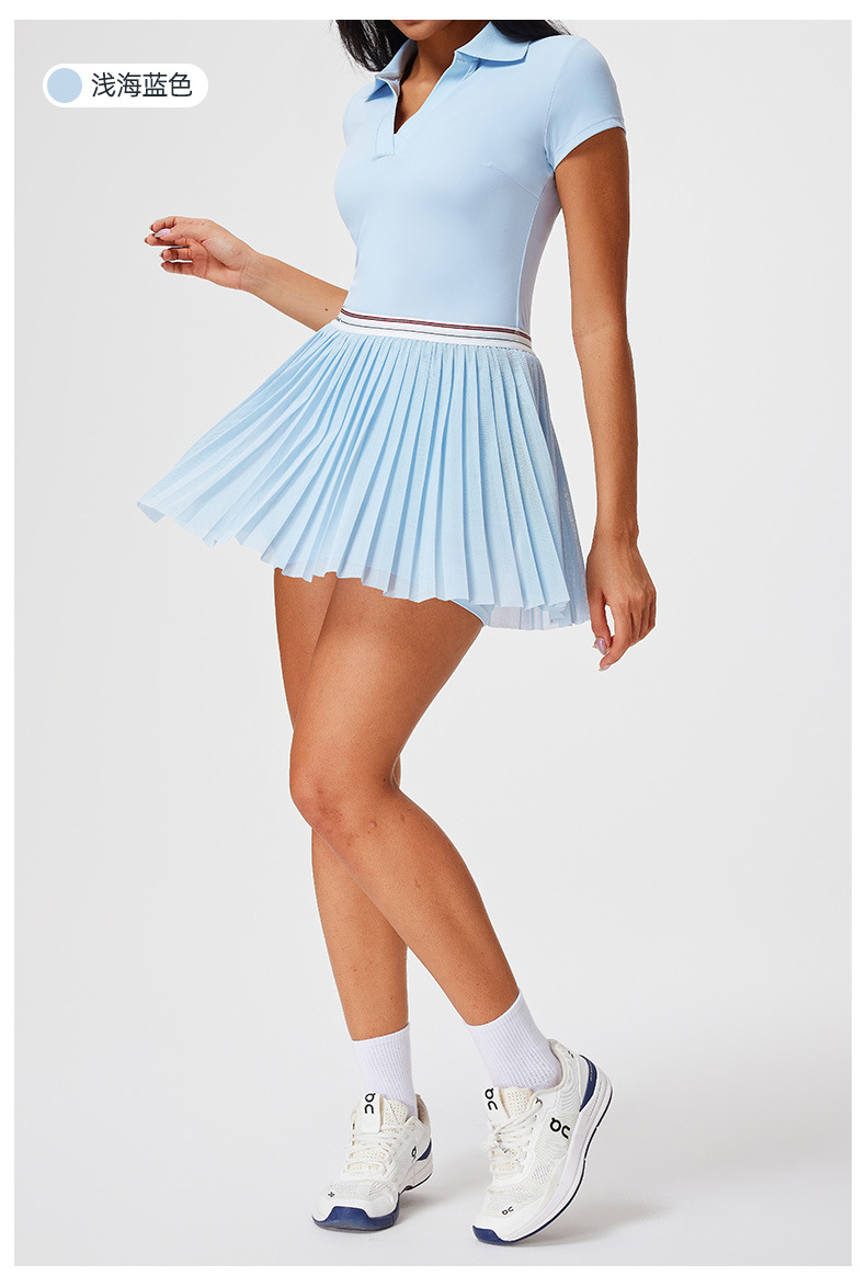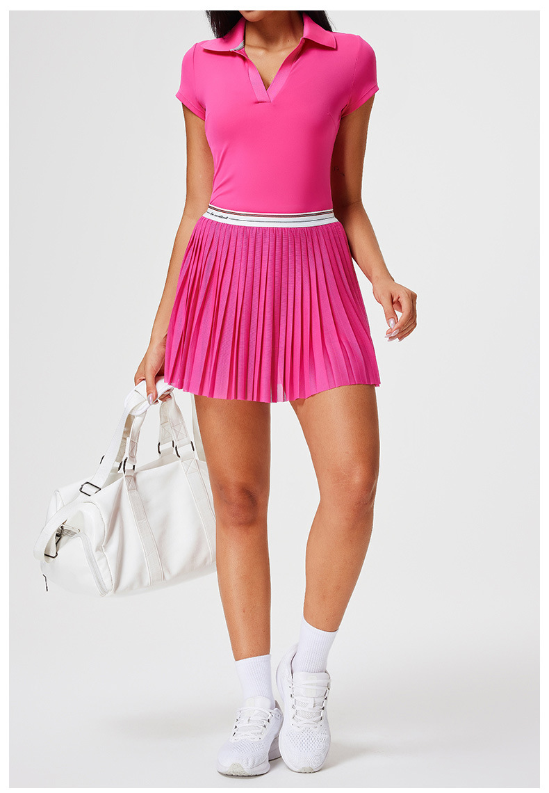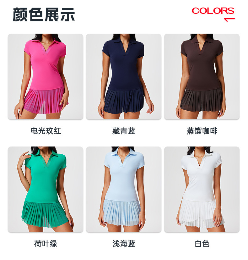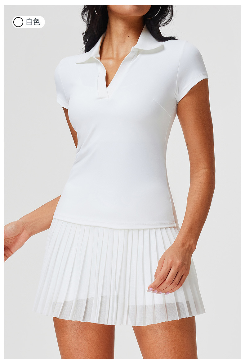 크로스보더 신상 캐주얼 스포츠 POLO 셔츠, 누드 느낌 런닝 피트니스 숏스커트, 아웃도어 골프 테니스 스커트 세트