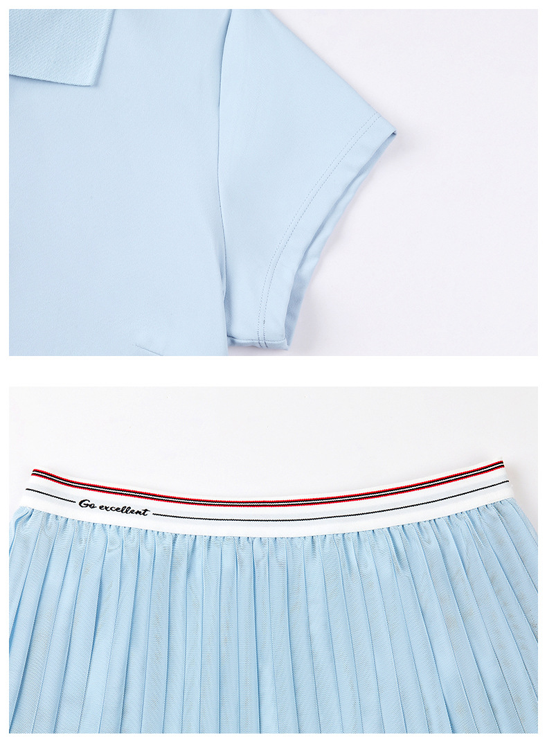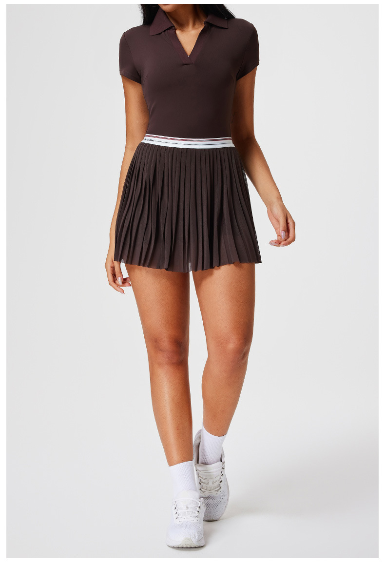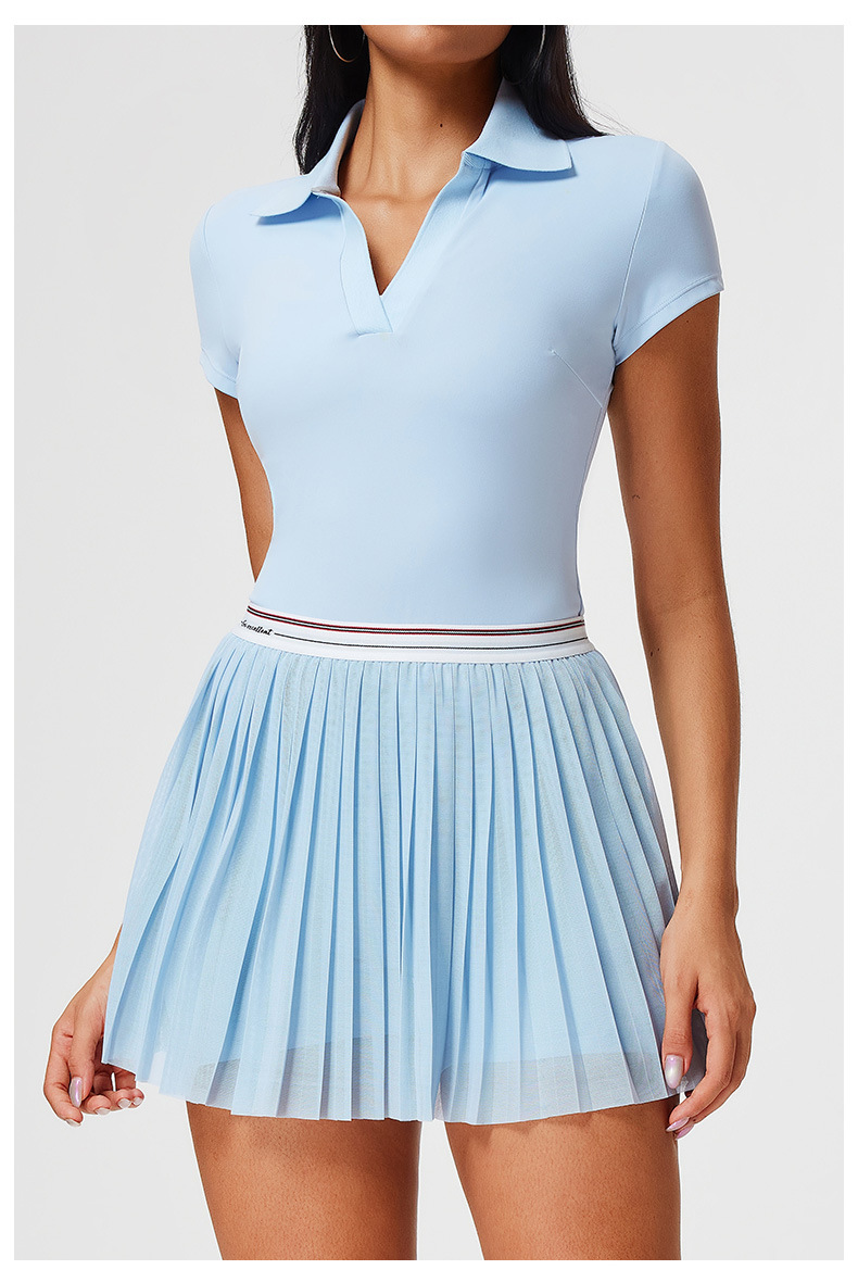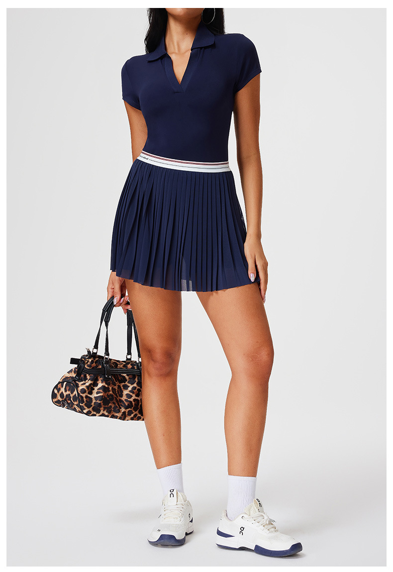 크로스보더 신상 캐주얼 스포츠 POLO 셔츠, 누드 느낌 런닝 피트니스 숏스커트, 아웃도어 골프 테니스 스커트 세트