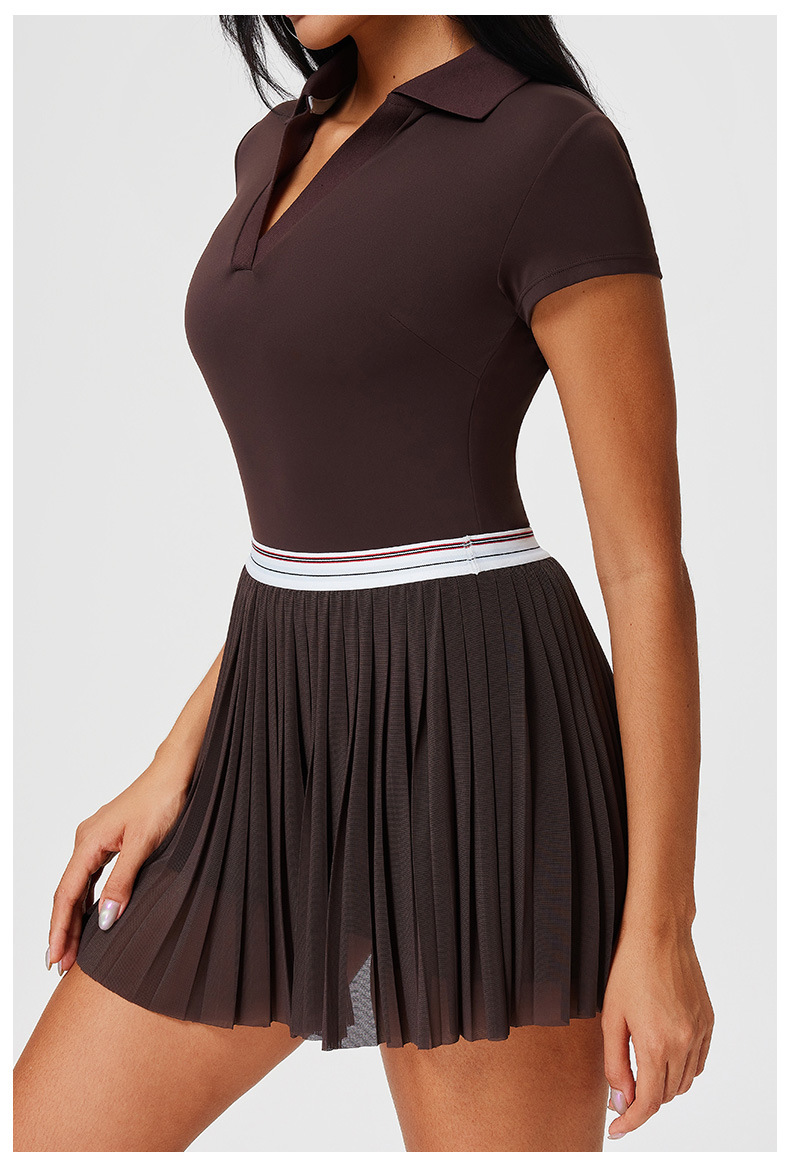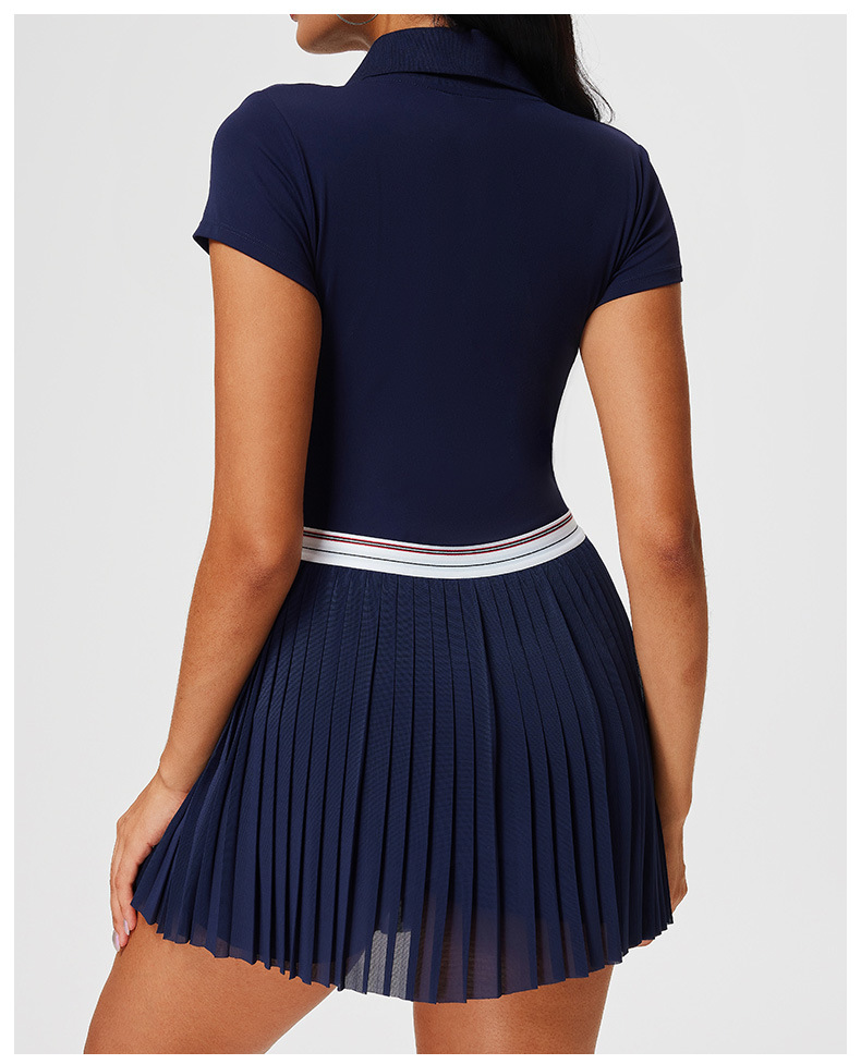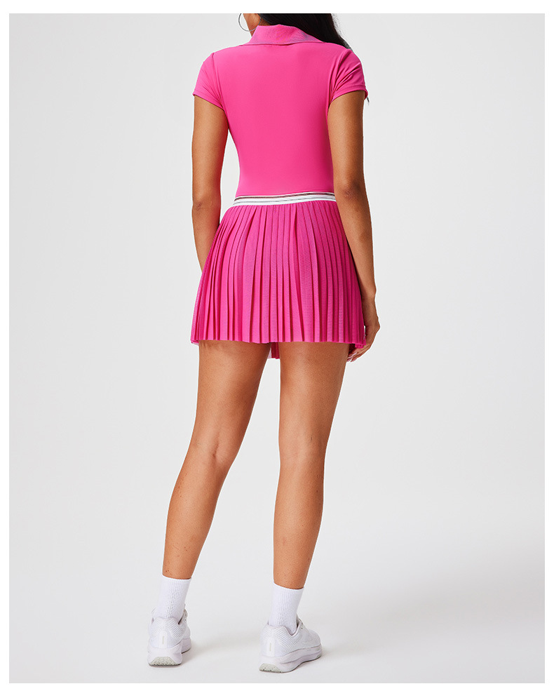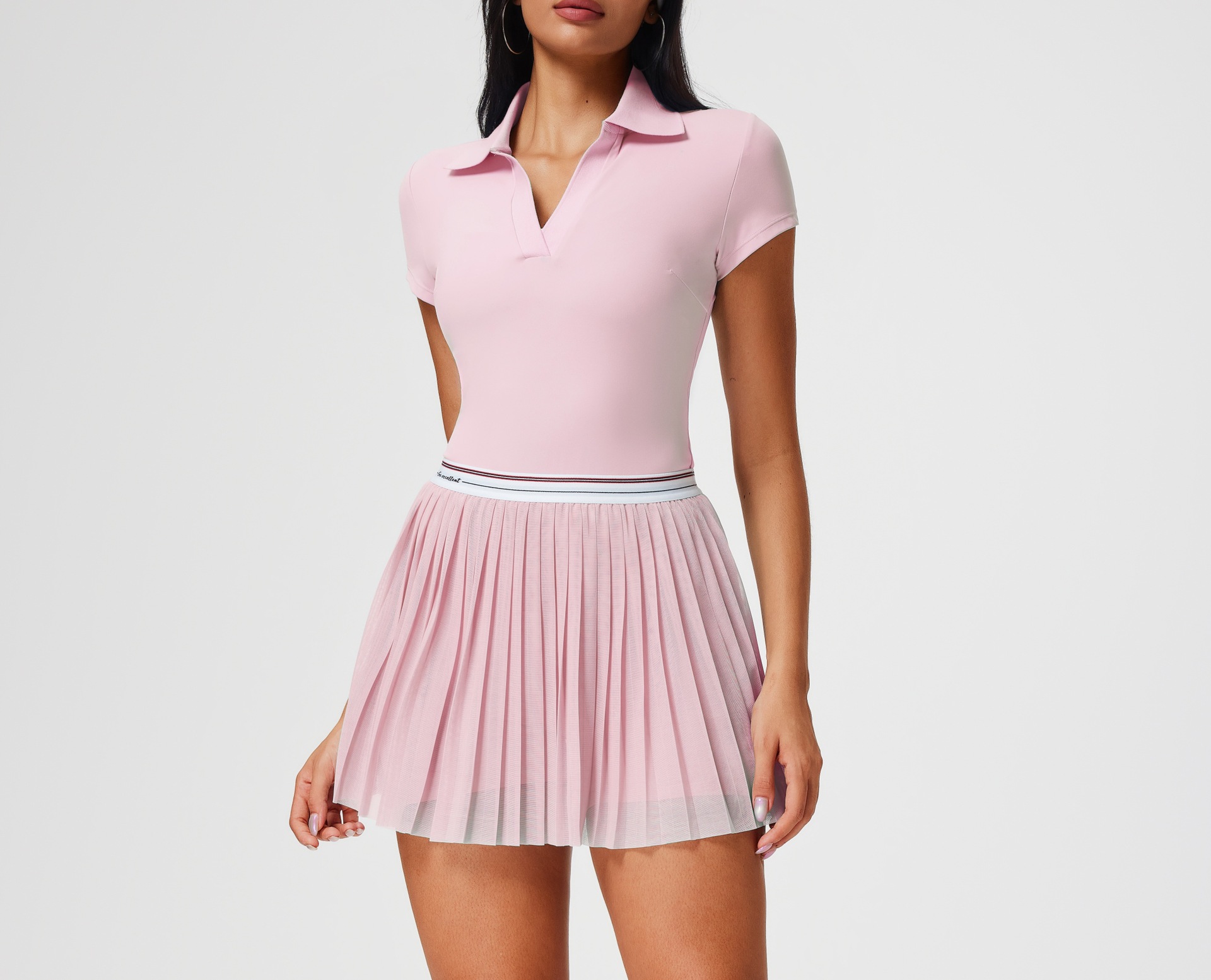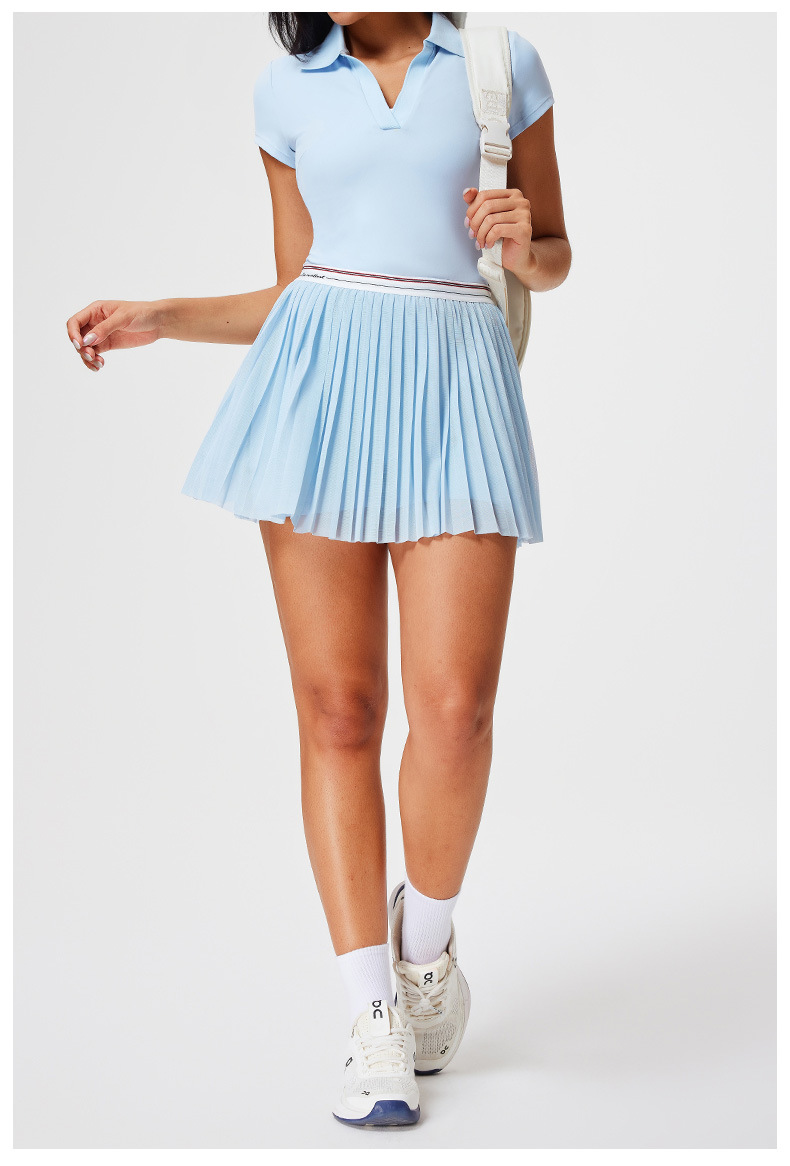 크로스보더 신상 캐주얼 스포츠 POLO 셔츠, 누드 느낌 런닝 피트니스 숏스커트, 아웃도어 골프 테니스 스커트 세트