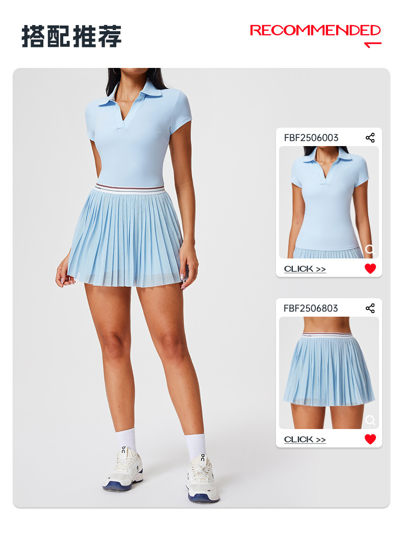 크로스보더 신상 캐주얼 스포츠 POLO 셔츠, 누드 느낌 런닝 피트니스 숏스커트, 아웃도어 골프 테니스 스커트 세트스토어 가기