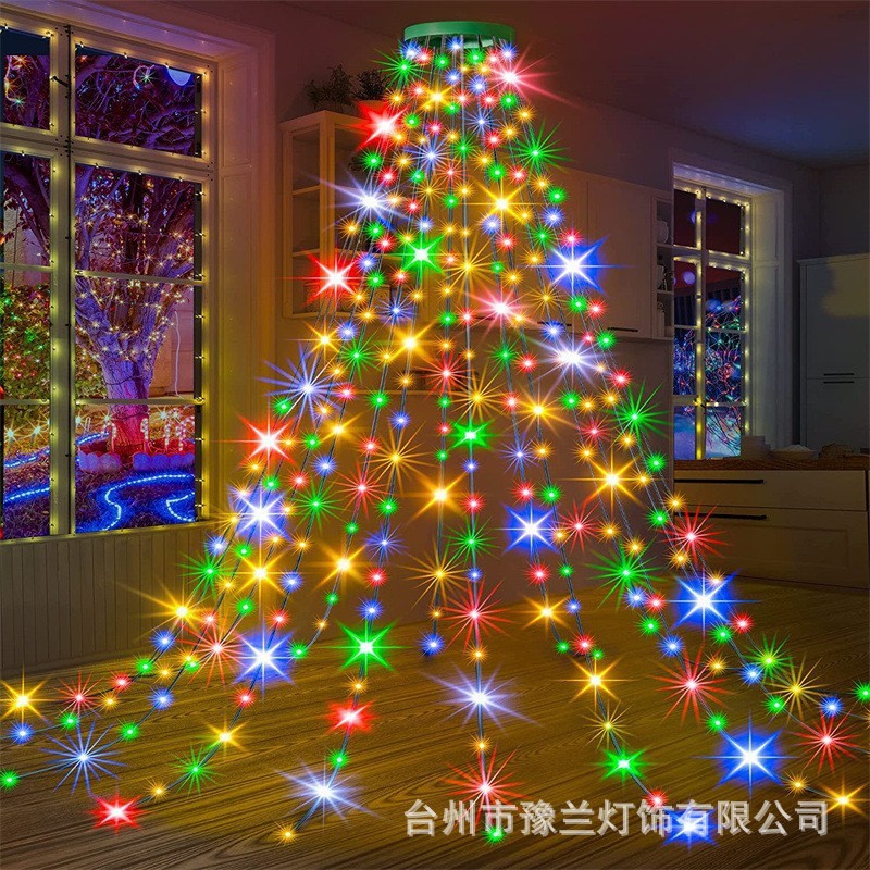 크리스마스 LED 원형 트리 탑 라이트 저전압 오각별 다채로운 트리 장식 조명 스트링스토어 가기