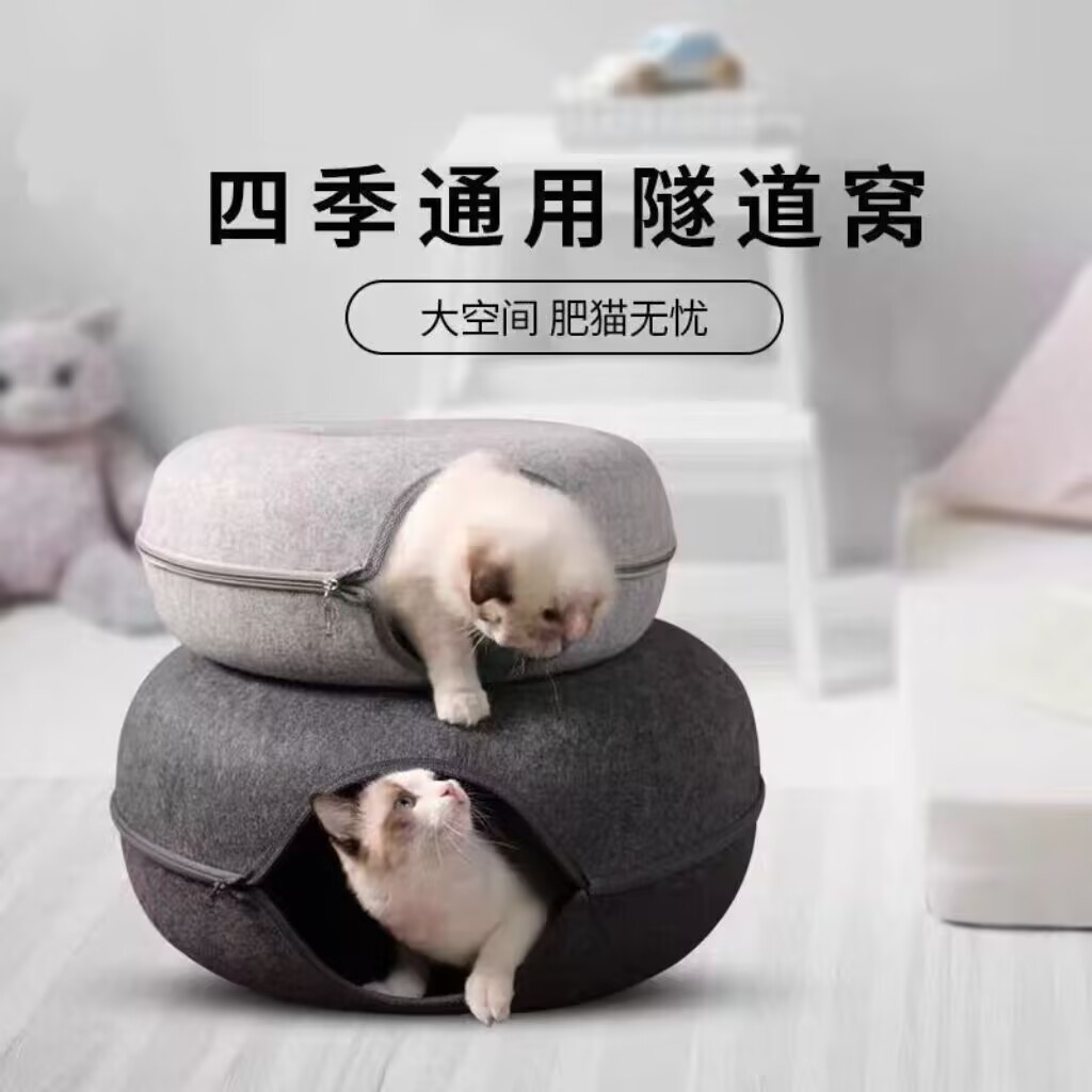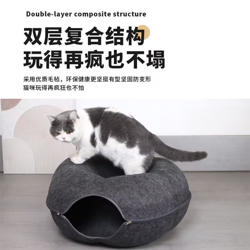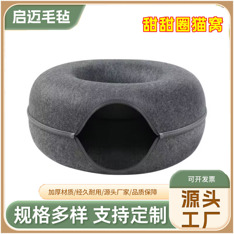 국경을 넘는 펠트 애완동물 둥지, 반밀폐형, 탈부착 및 세척 가능한 고양이 둥지, 올 시즌 보편적, 편안한 도넛, 통기성 펠트 고양이 둥지스토어 가기