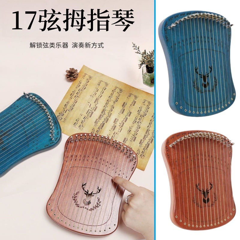 17현 손가락 악기, 희귀한 소형 악기, 학습하기 쉽고 휴대하기 쉬운 초보자 소녀에게 적합한 엄지 악기스토어 가기
