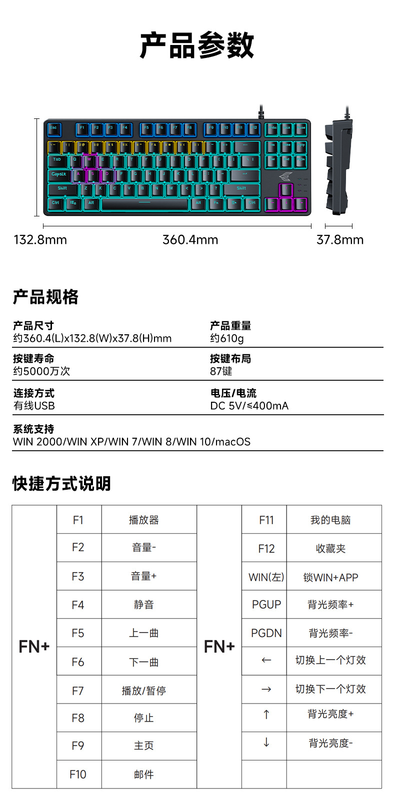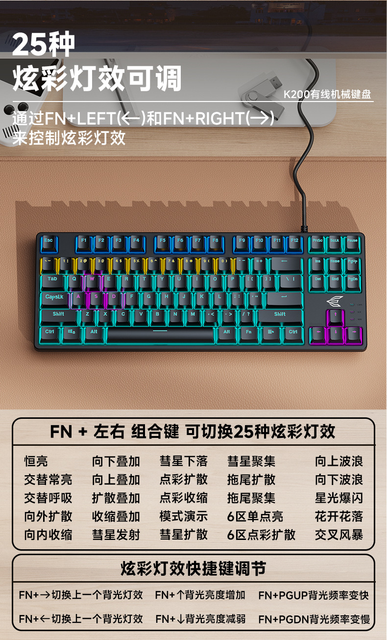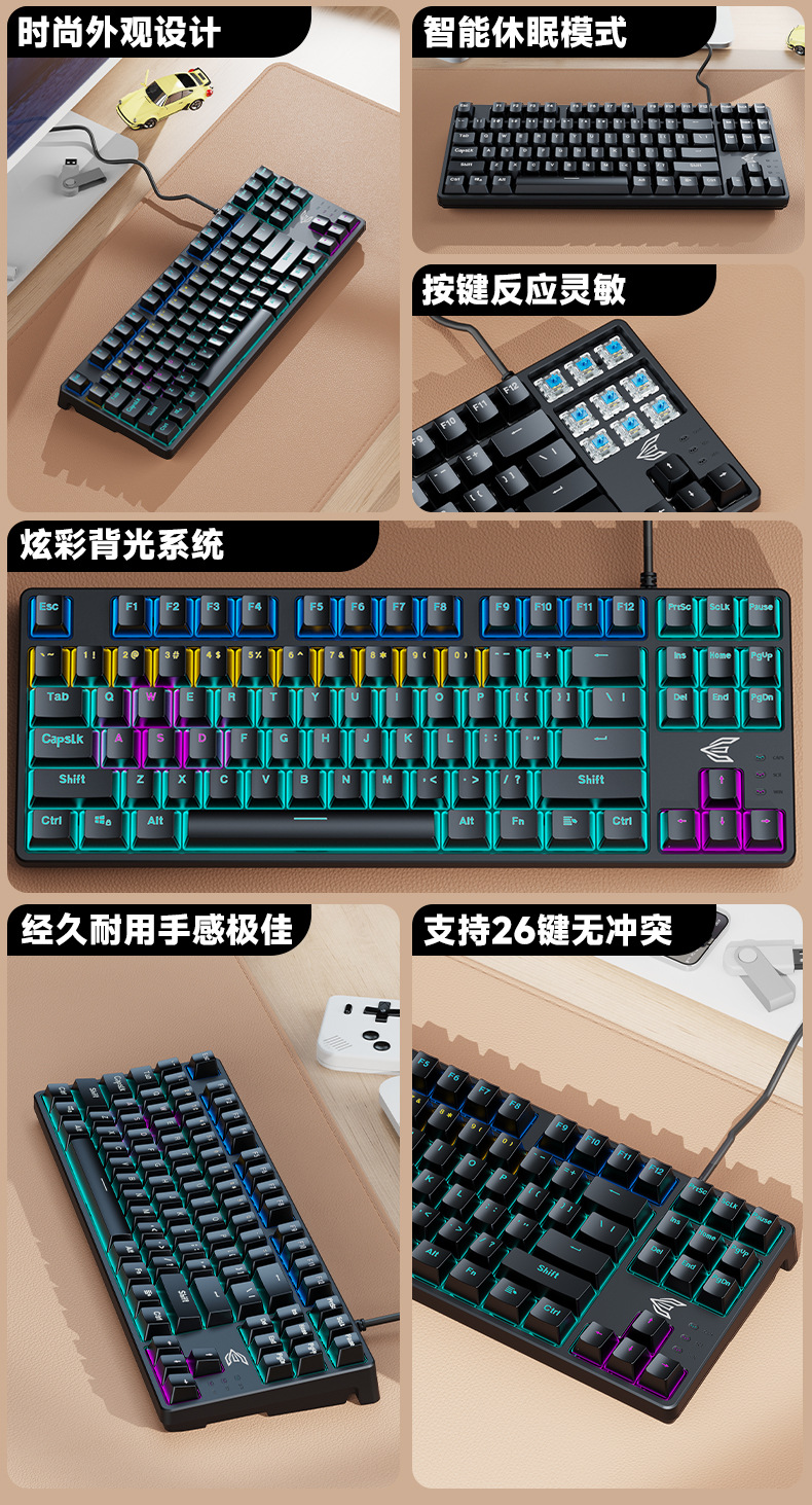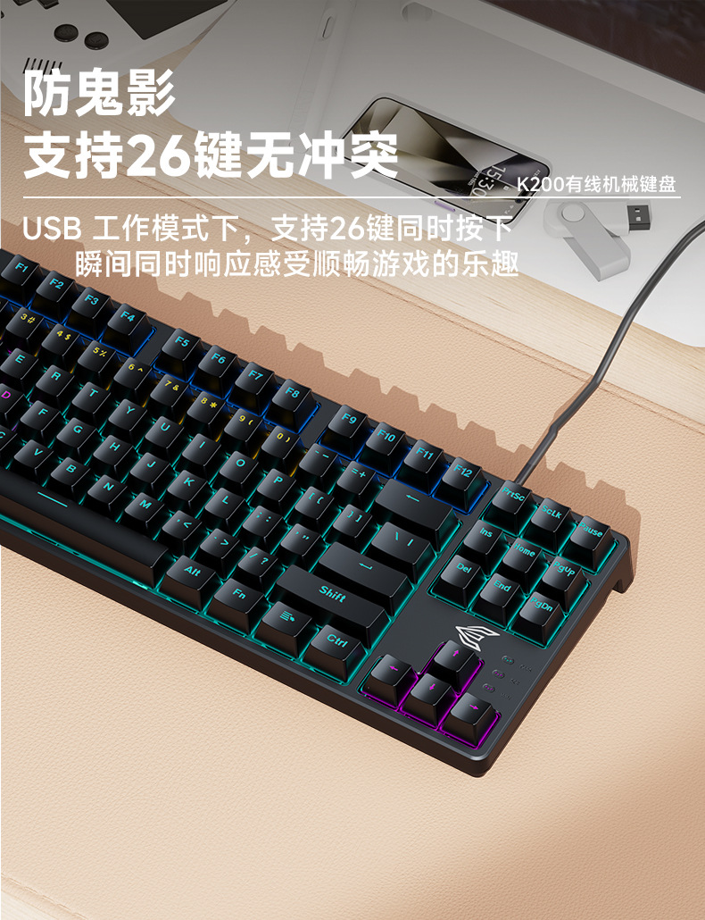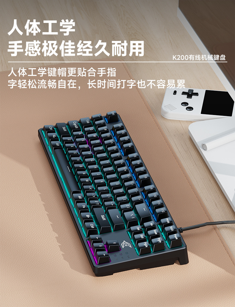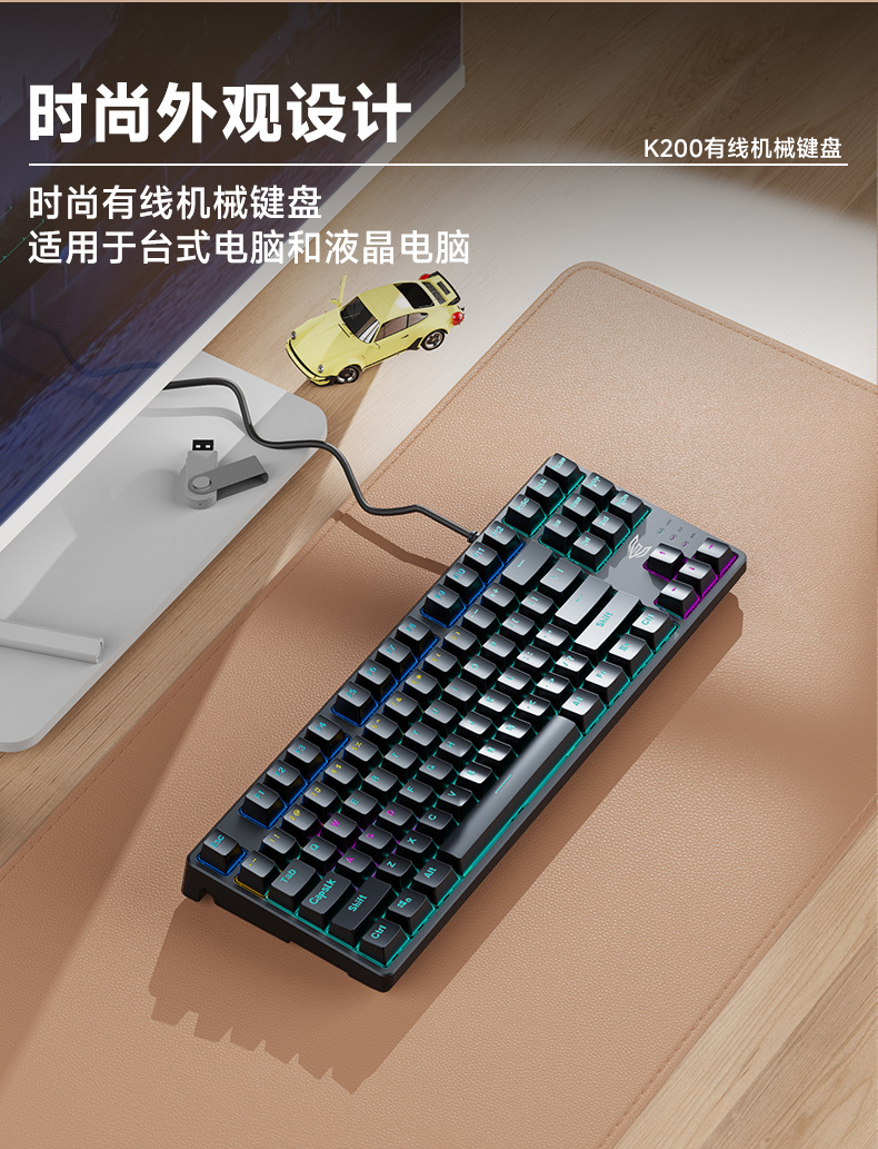 Power E Group K200 진정한 기계식 키보드 유선 e-스포츠 87키 치킨 비즈니스 오피스 혼합 조명 게임 키보드 USB스토어 가기