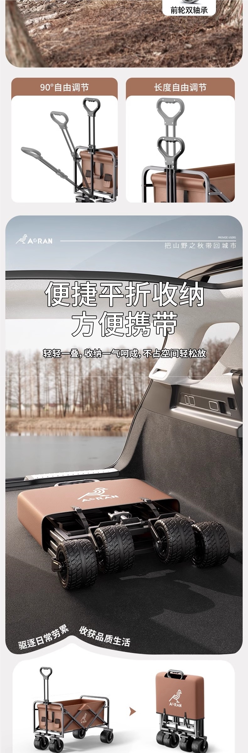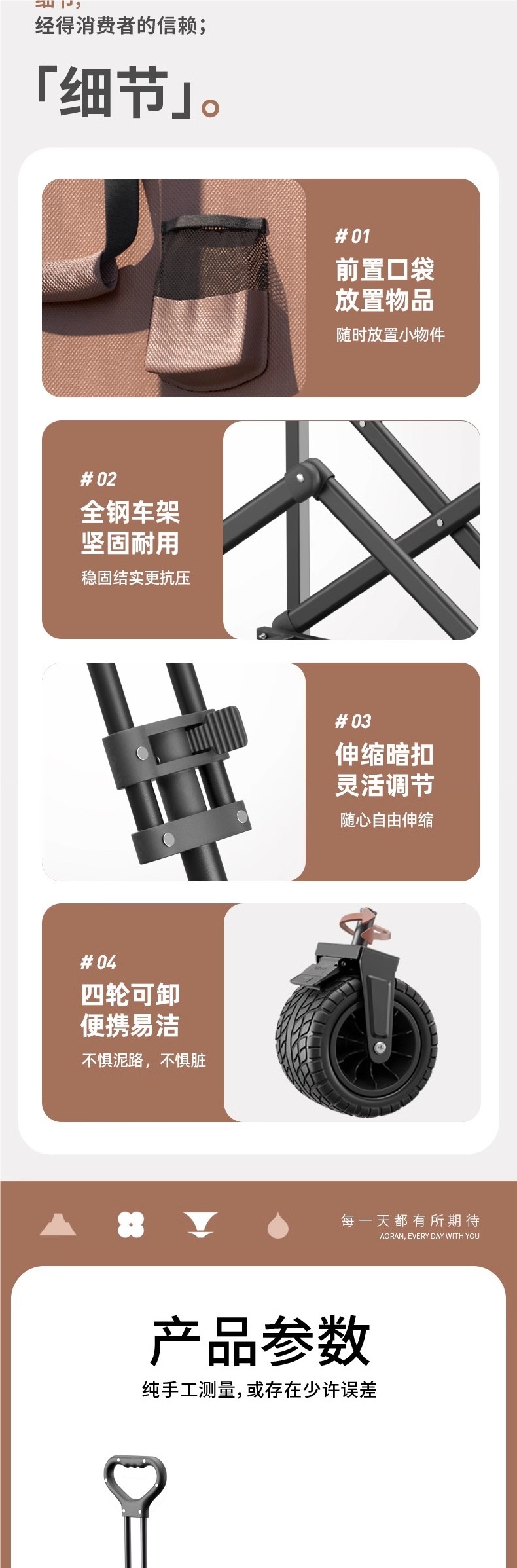 • [업그레이드 모델/커피] 13cm 유니버셜 휠 + 70cm 올스틸 프레임 + 휴대용 수납공간