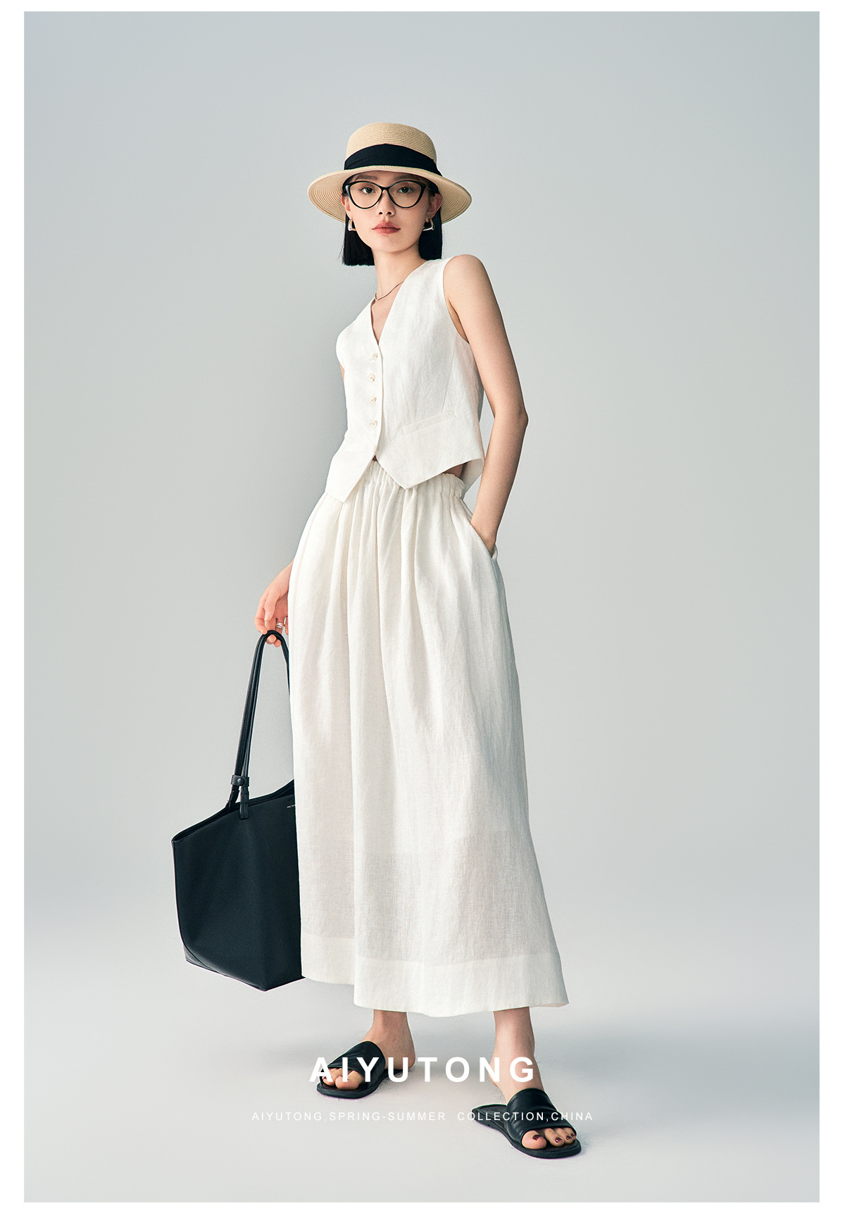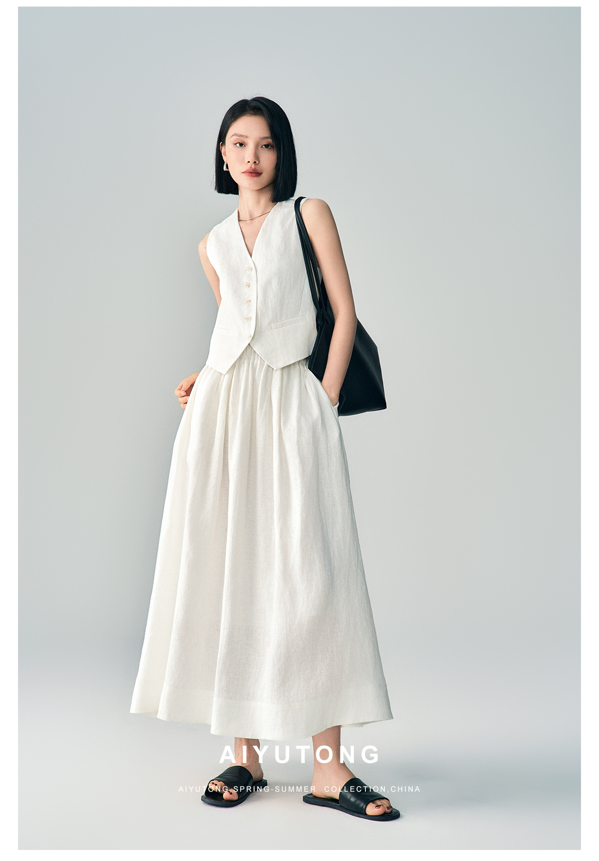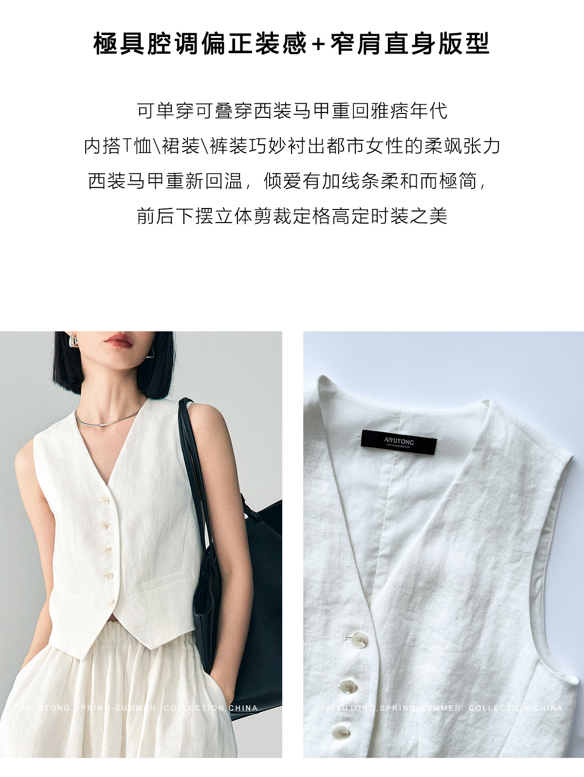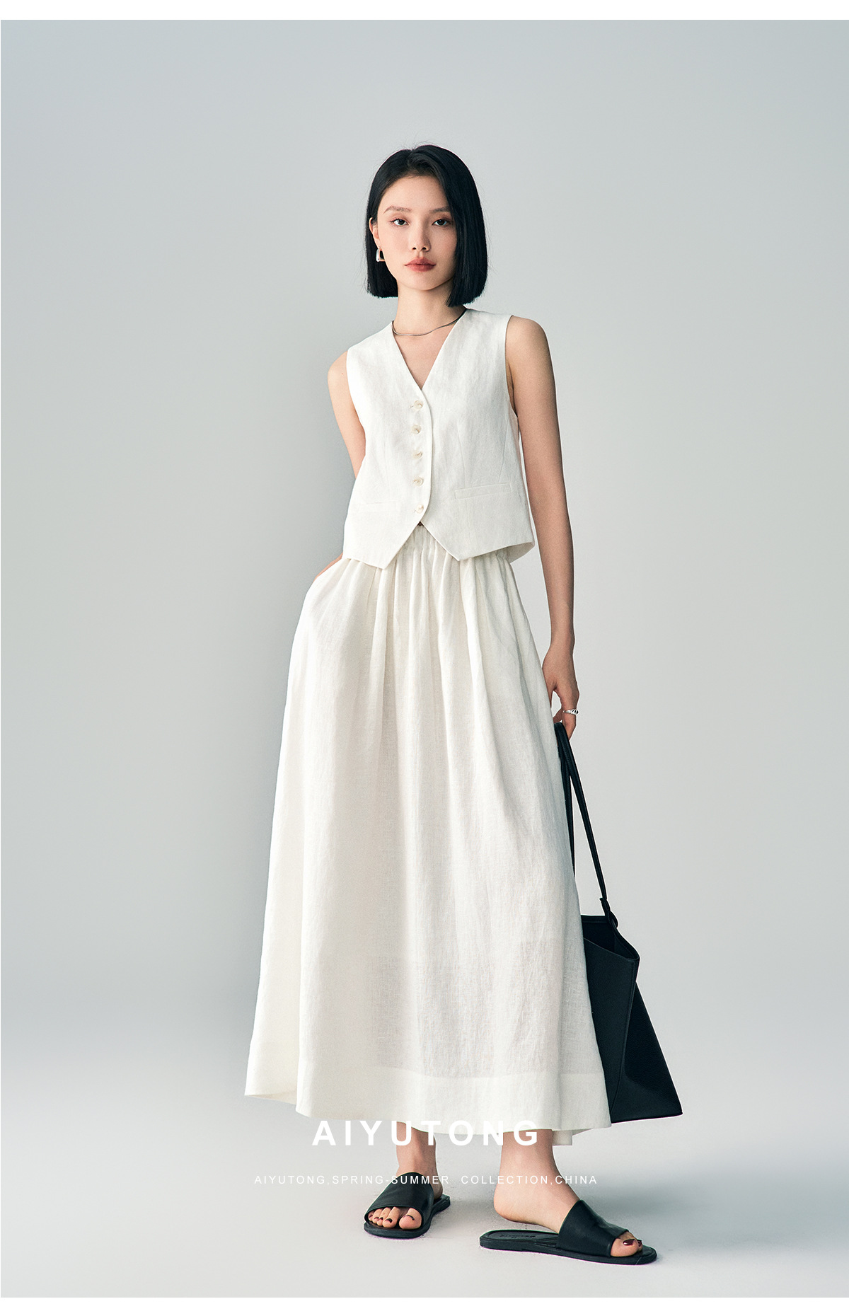 Ji 간단한 하이 엔드 여름 새로운 스타일 올드 머니 스타일 하이 엔드 화이트 린넨 조끼/스커트 정장 여성용