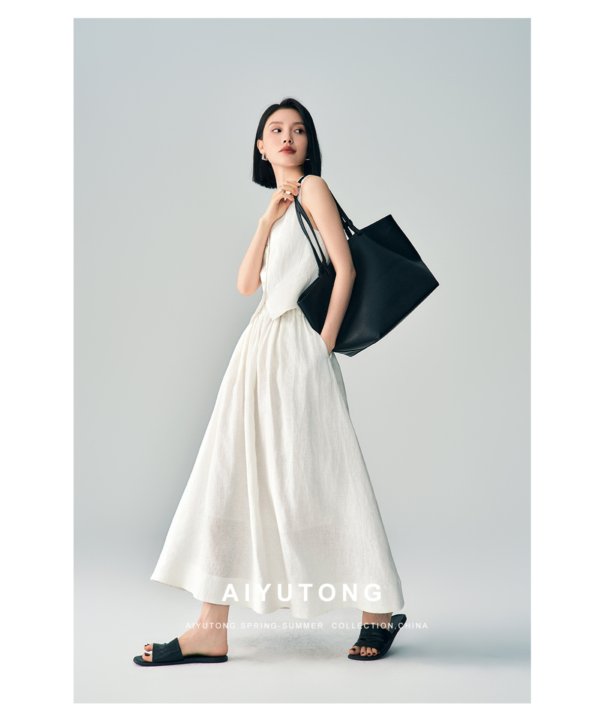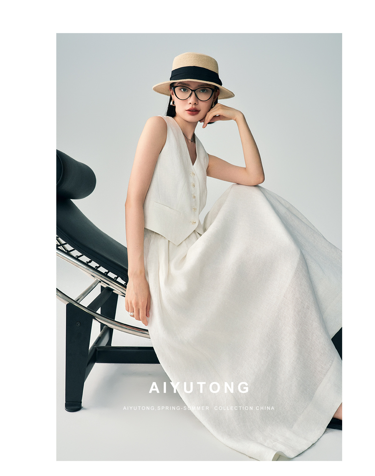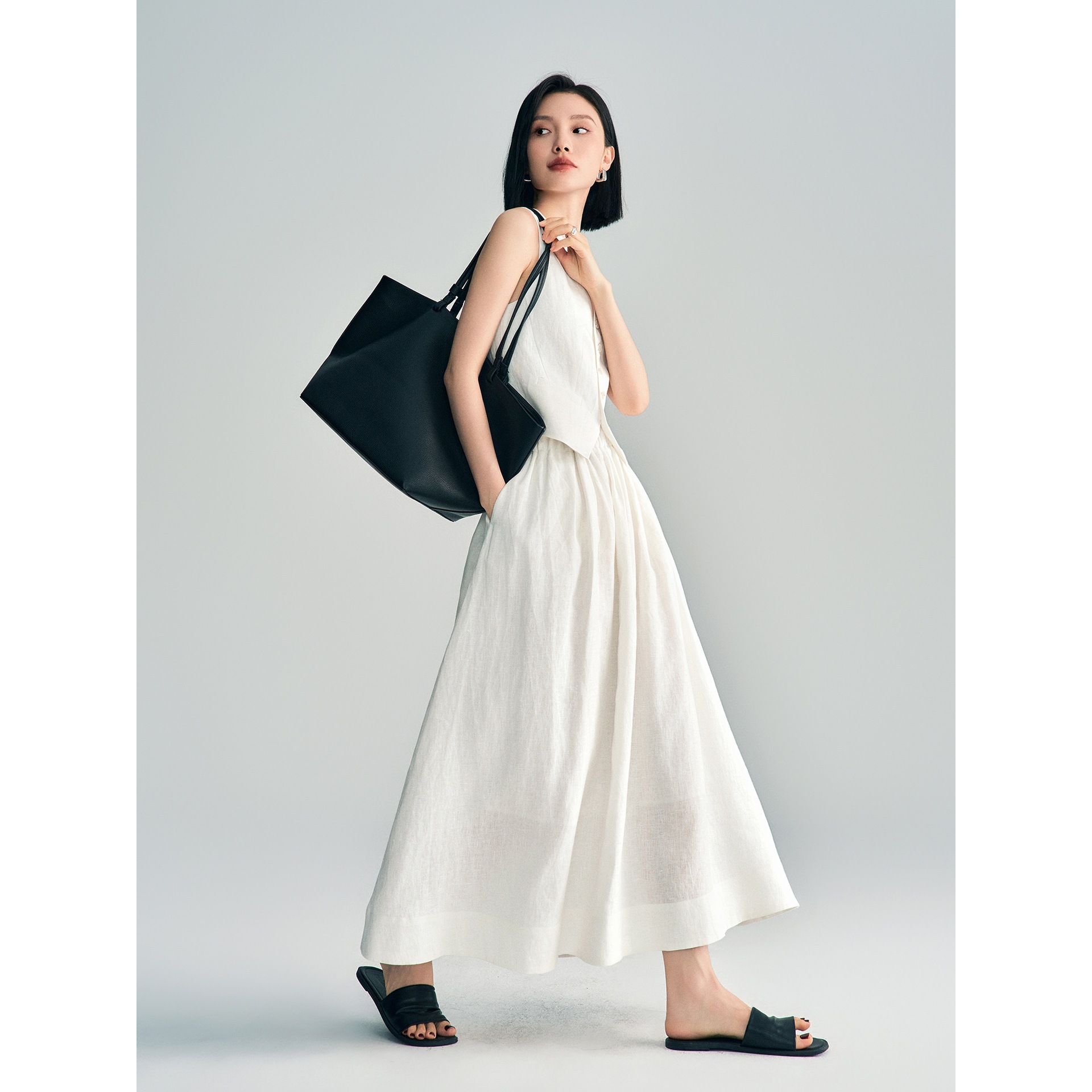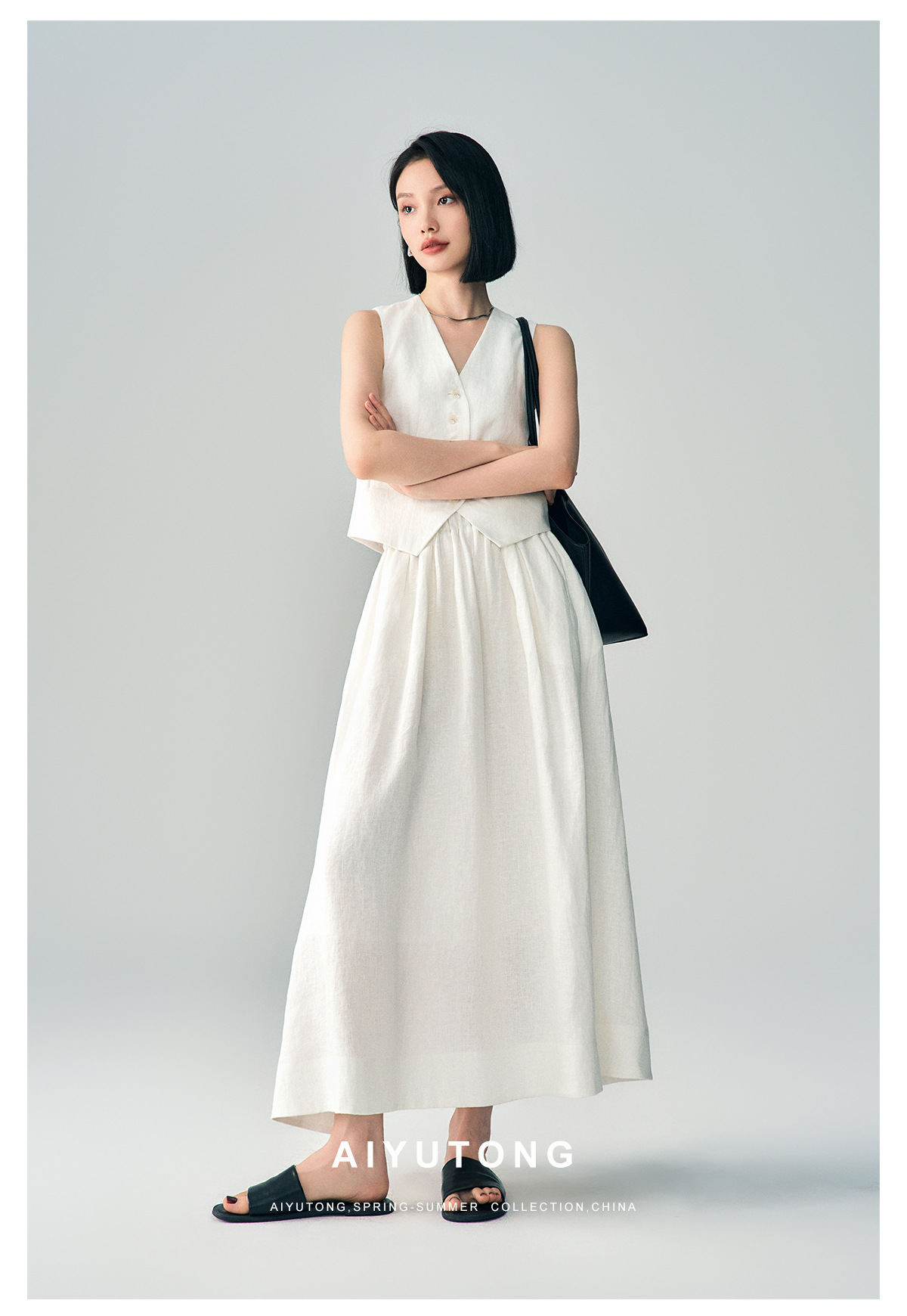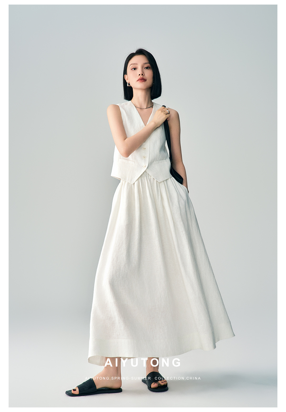 Ji 간단한 하이 엔드 여름 새로운 스타일 올드 머니 스타일 하이 엔드 화이트 린넨 조끼/스커트 정장 여성용
