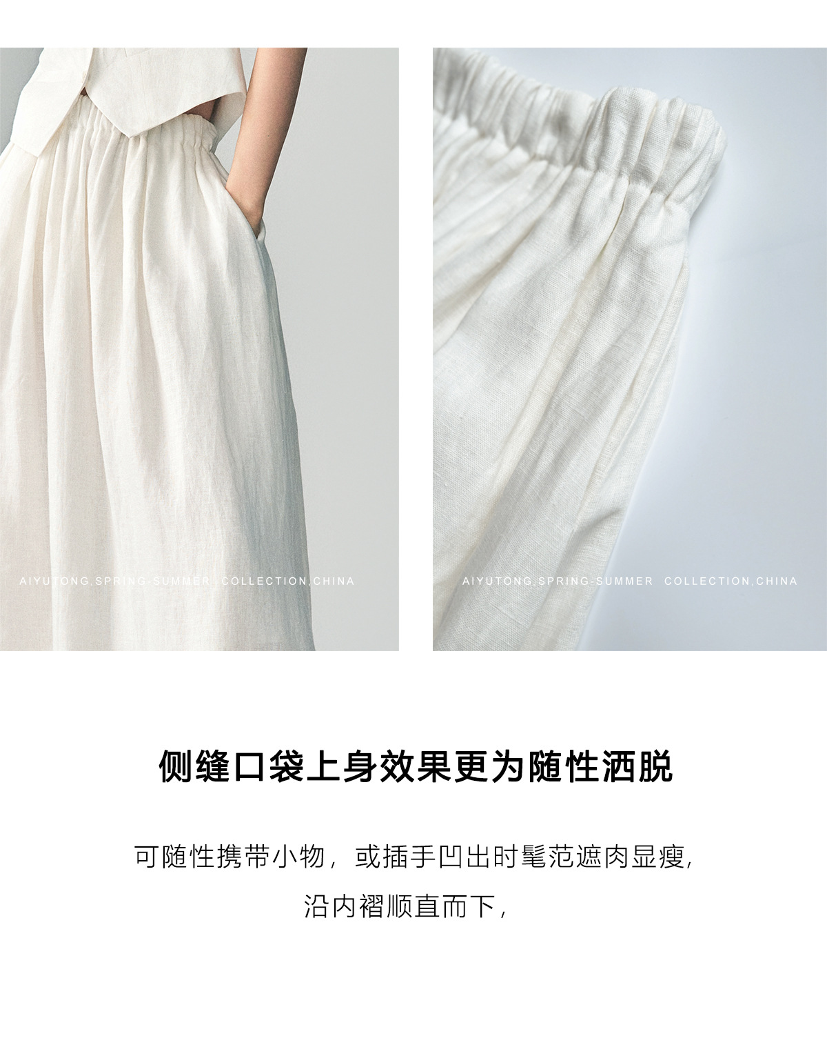 半身裙 成分为:11% 亚麻  89% 棉