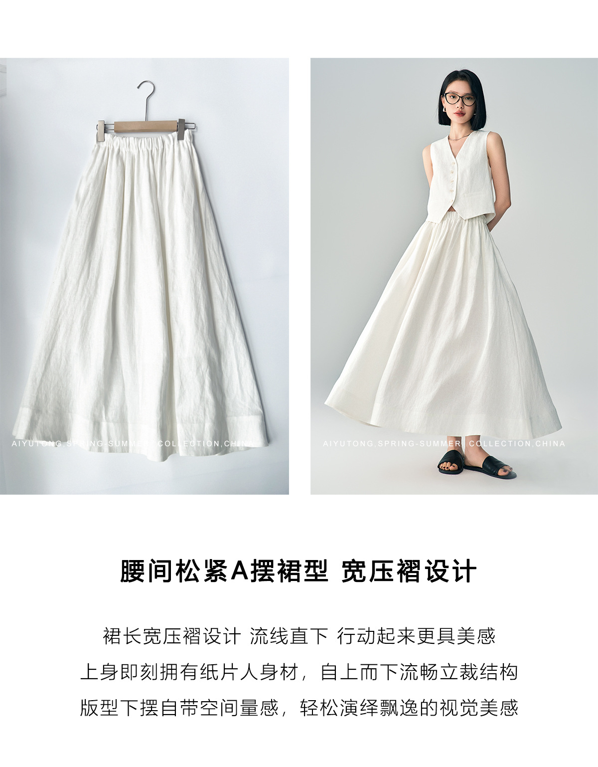 • 화이트 스커트(면, 린넨 소재)