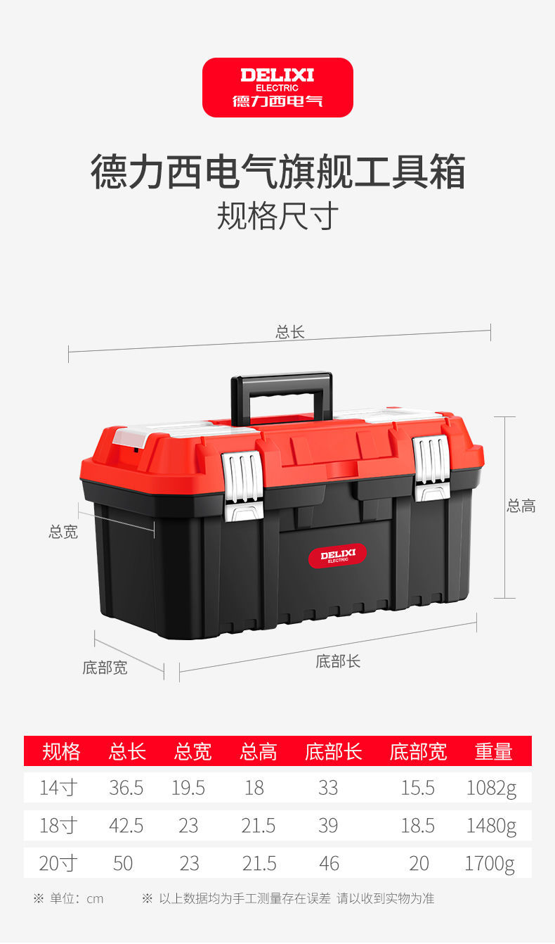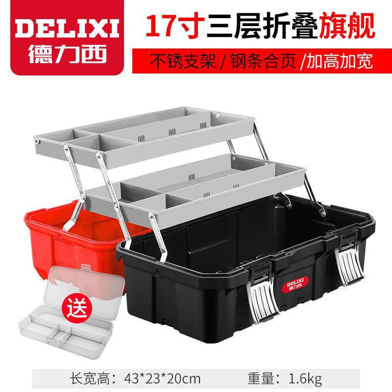 Delixi 도구 상자 보관 상자 가정용 휴대용 하드웨어 대형 자동차 산업 등급 다기능 도구 상자스토어 가기