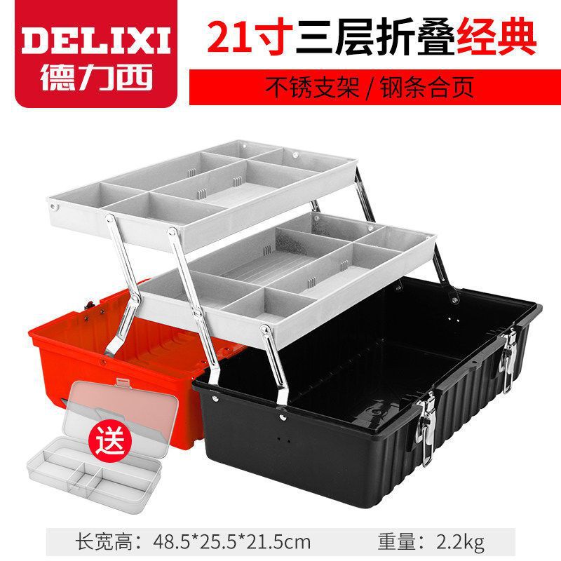 Delixi 도구 상자 보관 상자 가정용 휴대용 하드웨어 대형 자동차 산업 등급 다기능 도구 상자