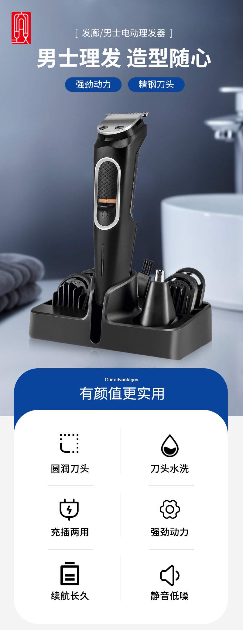 다기능 이발기 세트, 세척 가능한 전기 이발기, 강력한 파워, 미용실용 전기 이발기