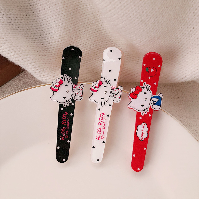 달콤한 소녀 흑백 폴카 도트 새끼 고양이 머리핀 귀엽고 달콤한 소녀 하트 앞머리 클립 Duckbill Clip Headwear Card for Women