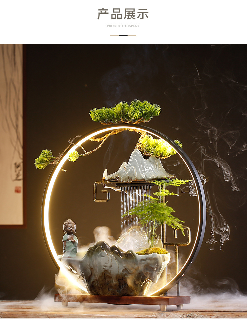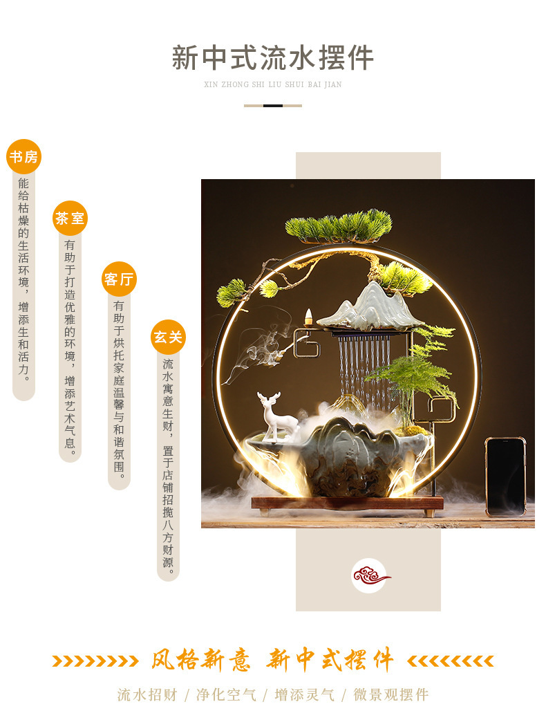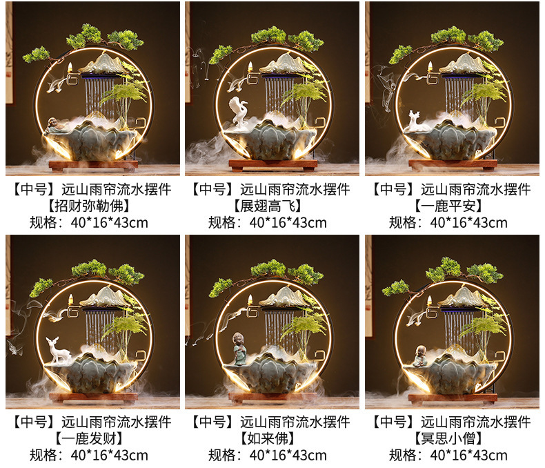 흐르는 물 개방형 석가산 가습기 새로운 중국 스타일 분수 레인 커튼 레인 커튼 행운을 빌어주는 거실 사무실 창조적 인 장식품스토어 가기