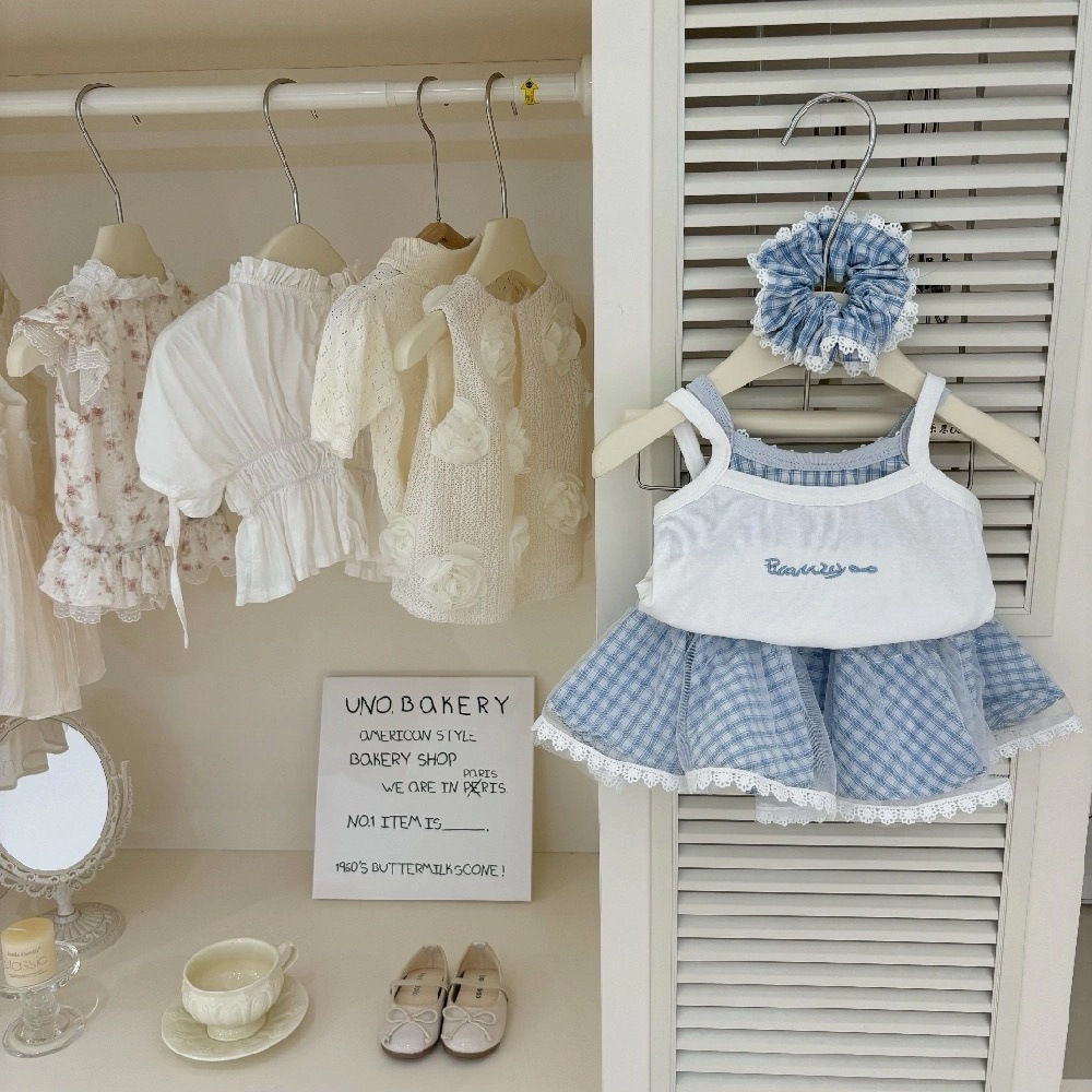 여아 한국 스타일 달콤한 여름복 2026 신상 아동 자수 민소매 탑과 레이스 체크무늬 스커트 투피스 세트스토어 가기