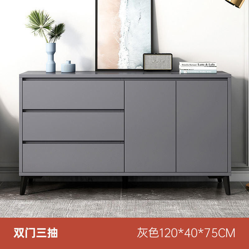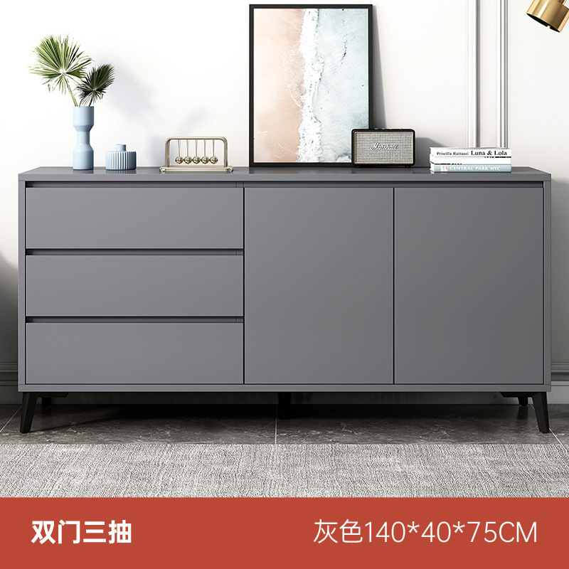 • [이중문 및 서랍 3개] 140*40*75CM 그레이 (레일이 있는 서랍)